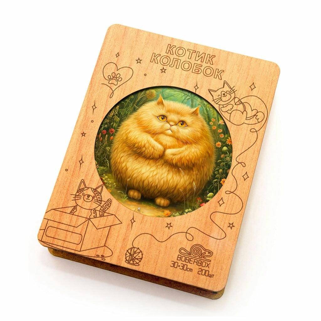 Купить Деревянный пазл BoberBox "Котик колобок", 200 деталей