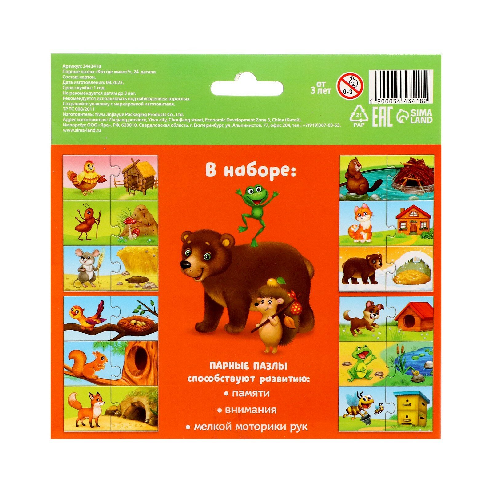 "Кто Где Живет" - 24 парные пазлы интересное: