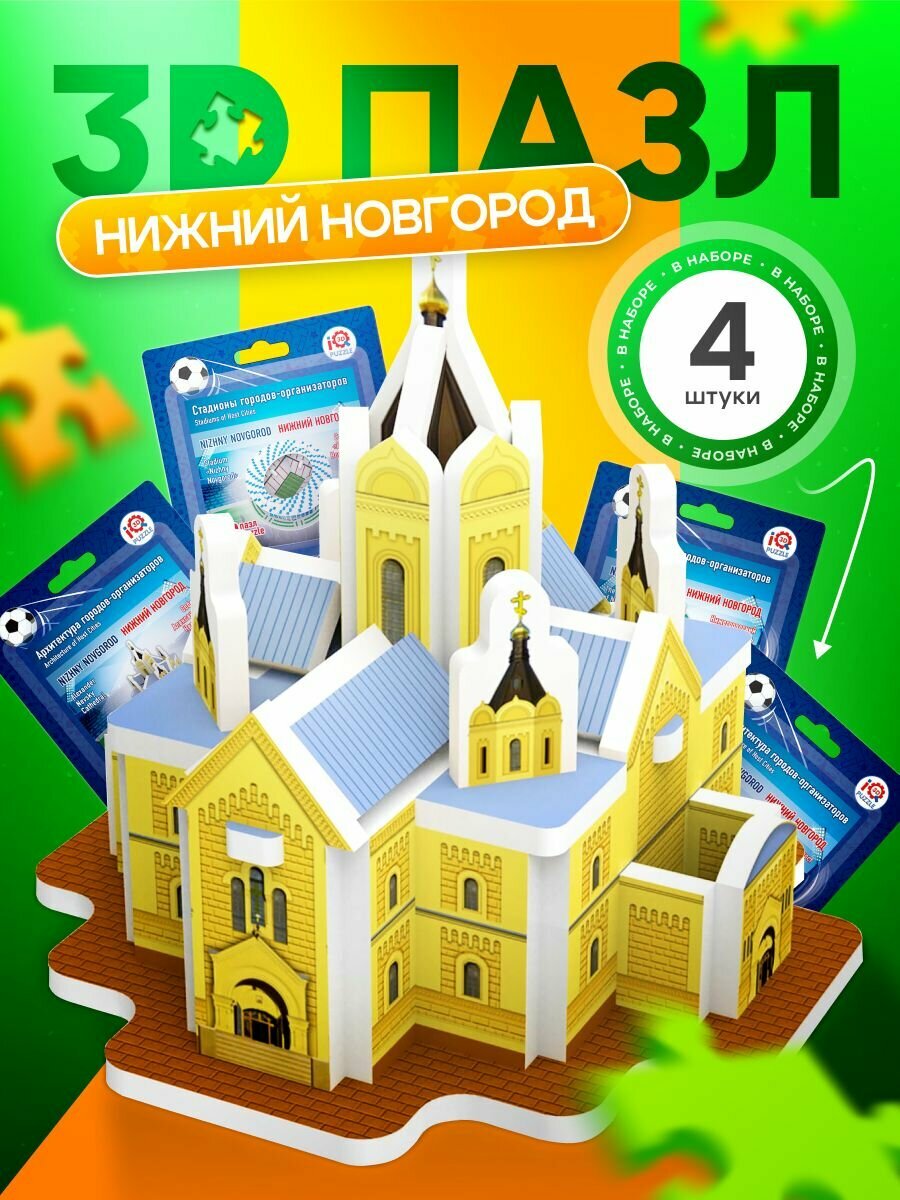 Купить IQ 3D PUZZLE Коллекционный сувенирный набор 3D пазлов Нижний Новгород (архитектура + стадион) 4 шт.