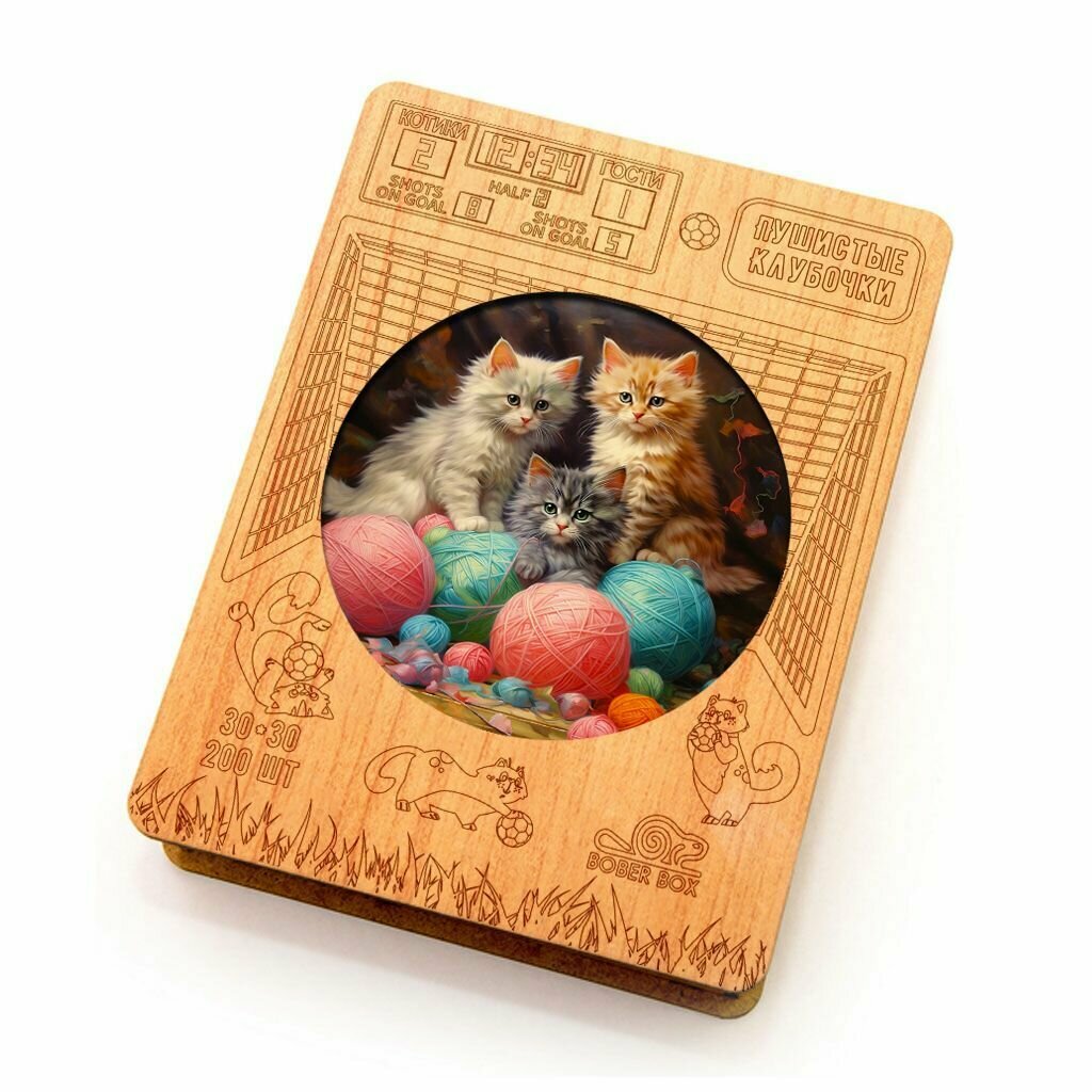 СохранитьДеревянный пазл BoberBox "Команда Пушистые Клубочки, Котики футболисты", 200 деталей интересное: