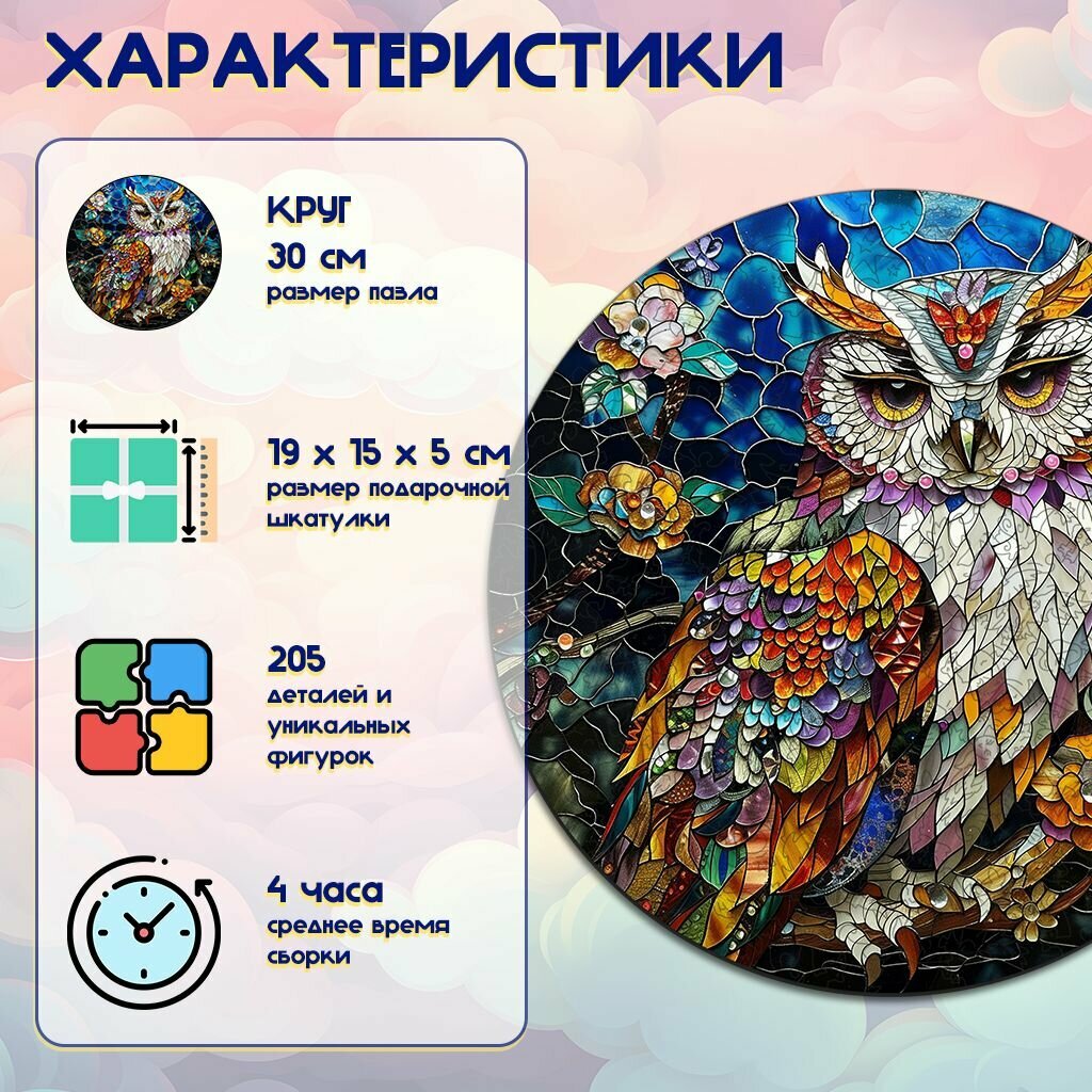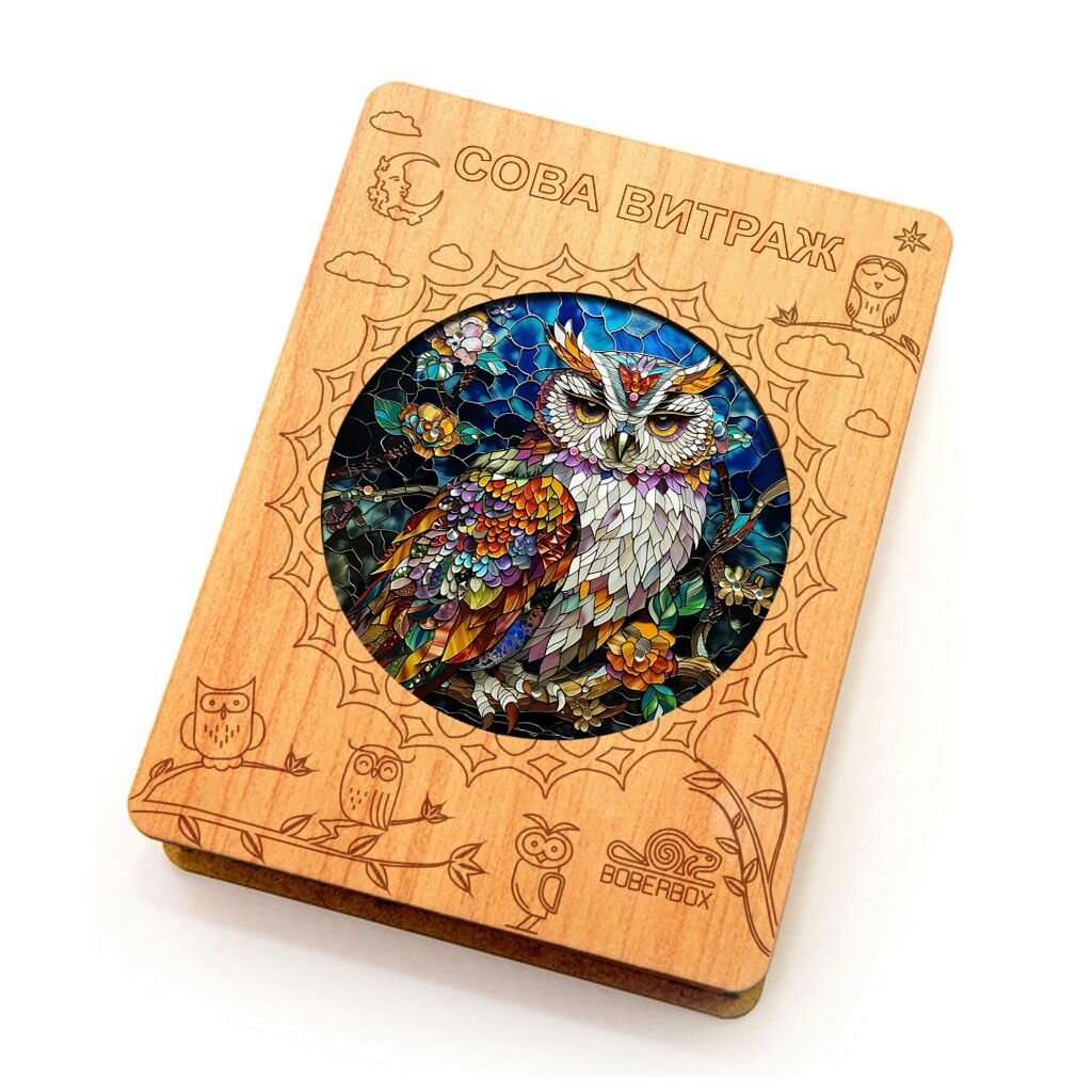 СохранитьДеревянный пазл BoberBox "Сова витраж", 205 деталей интересное: