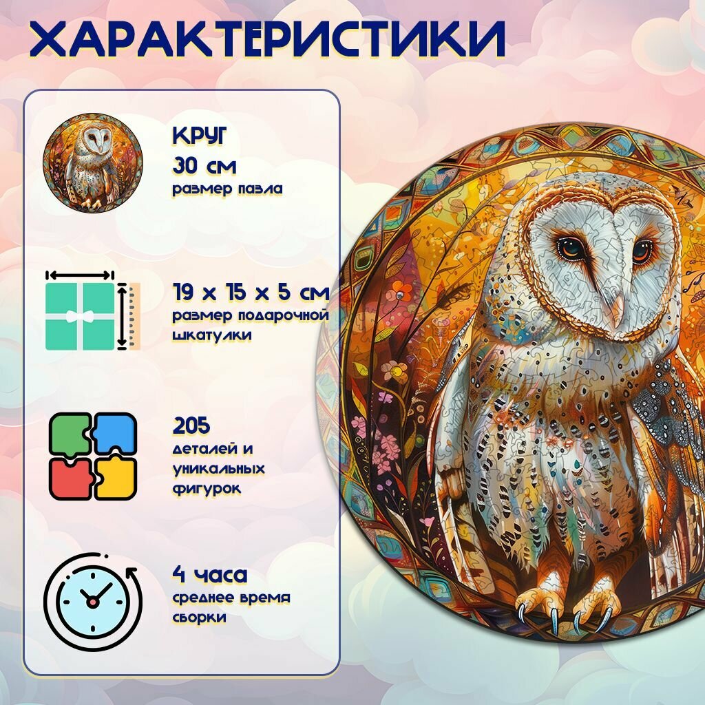 Купить Деревянный пазл BoberBox "Мандала Сипуха", 205 деталей