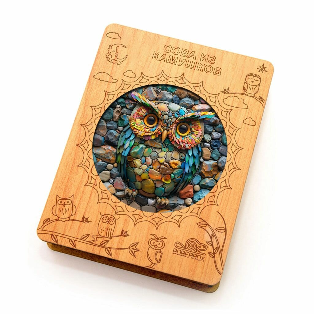 СохранитьДеревянный пазл BoberBox "Сова из камушков", 205 деталей интересное: