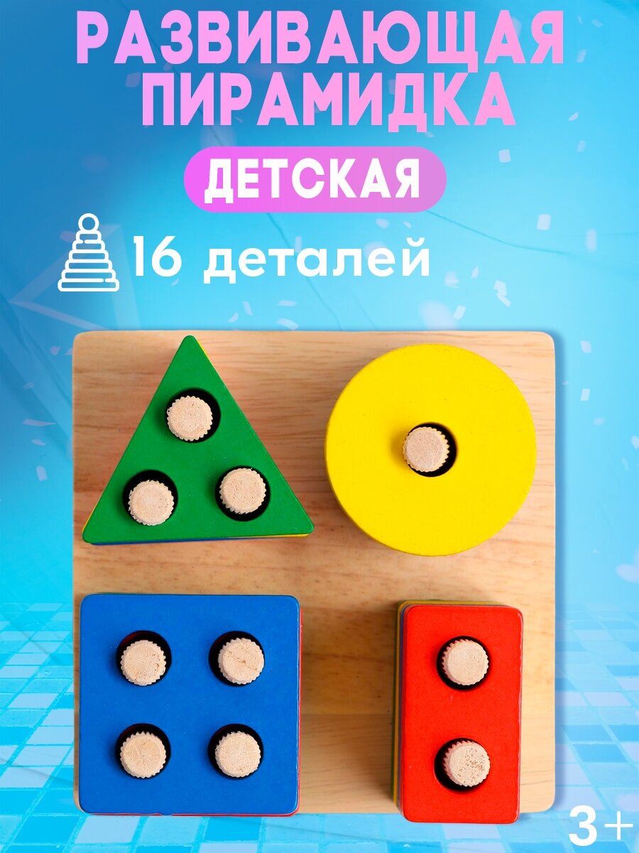 Развивающая пирамидка "Собери сам", 16 деталей, размер: 11,5х11,5х5 см., для детей и малышей интересное:
