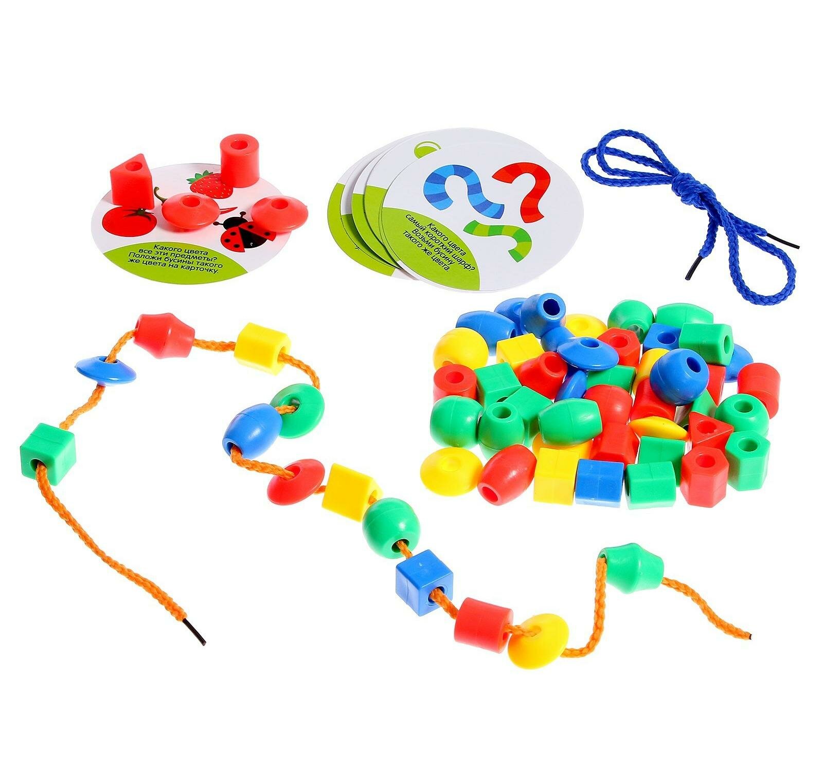 Купить Шнуровка с карточками ZABIAKA 60 шт., 16 развивающих заданий, по методике Монтессори