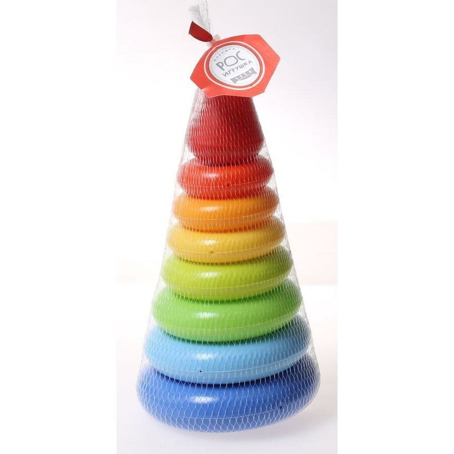 Пирамида Малая (23см, с кольцами, 8 деталей, пластик, в сетке, от 1 года) 9223, (Рославльская игрушка)