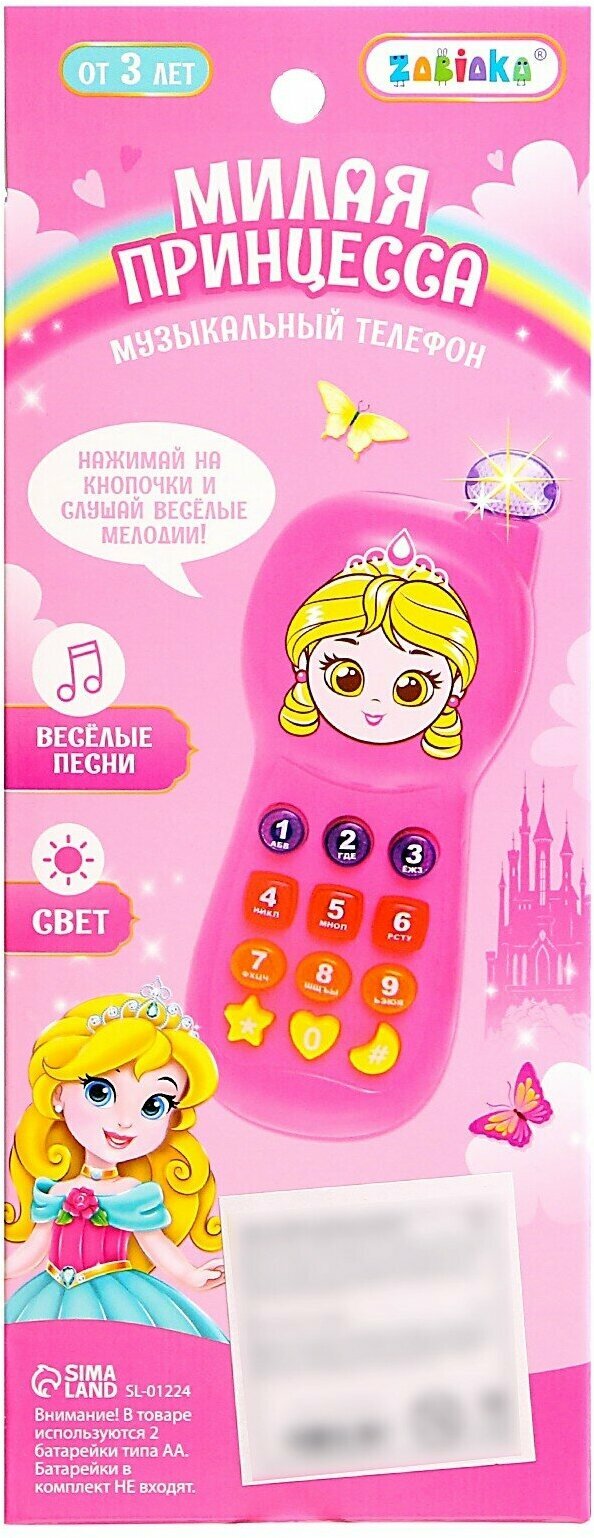 Купить Телефончик музыкальный ZABIAKA «Маленькая принцесса», световые и звуковые эффекты, русская озвучка