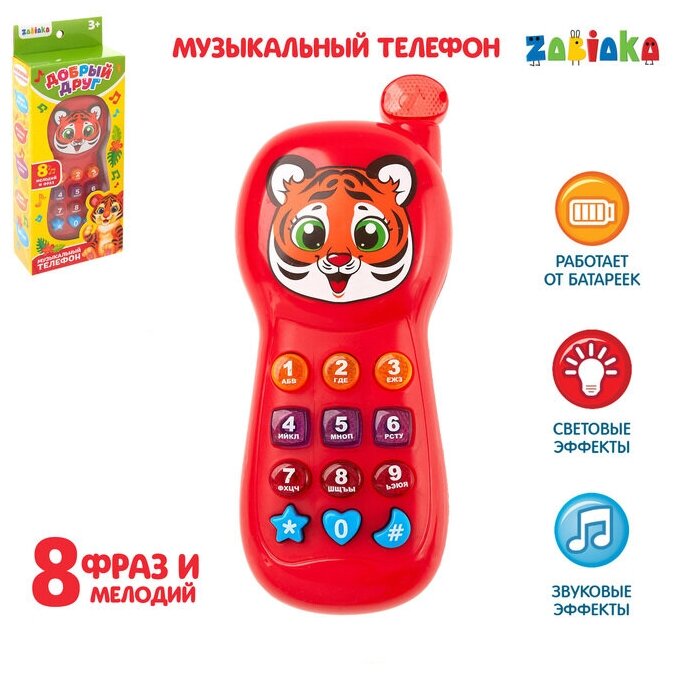 Музыкальный телефон ZABIAKA "Добрый друг", световые эффекты, русская озвучка (3098524)