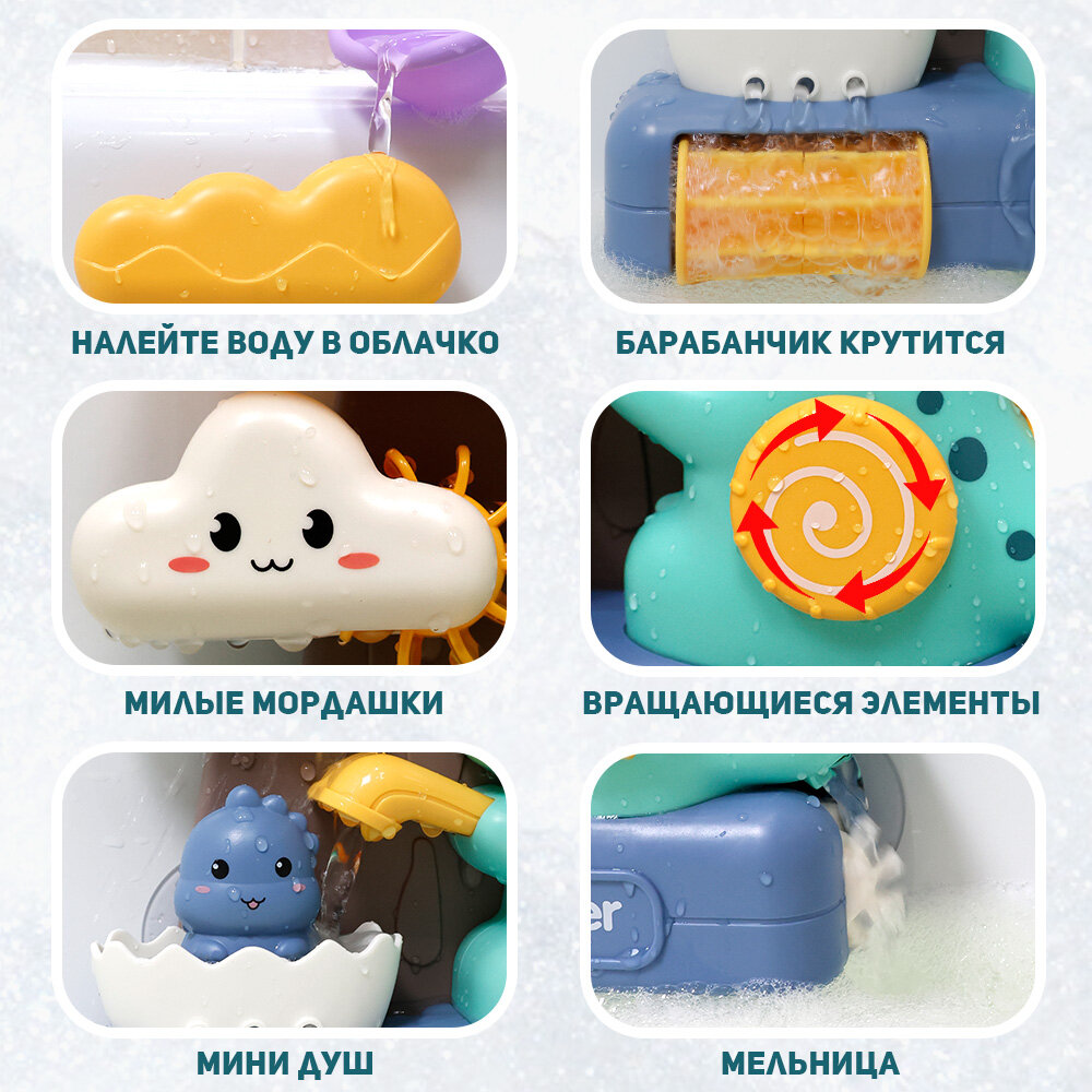 | Виды игрушек в комплекте | динозавр, крабик, лейка, мельница |