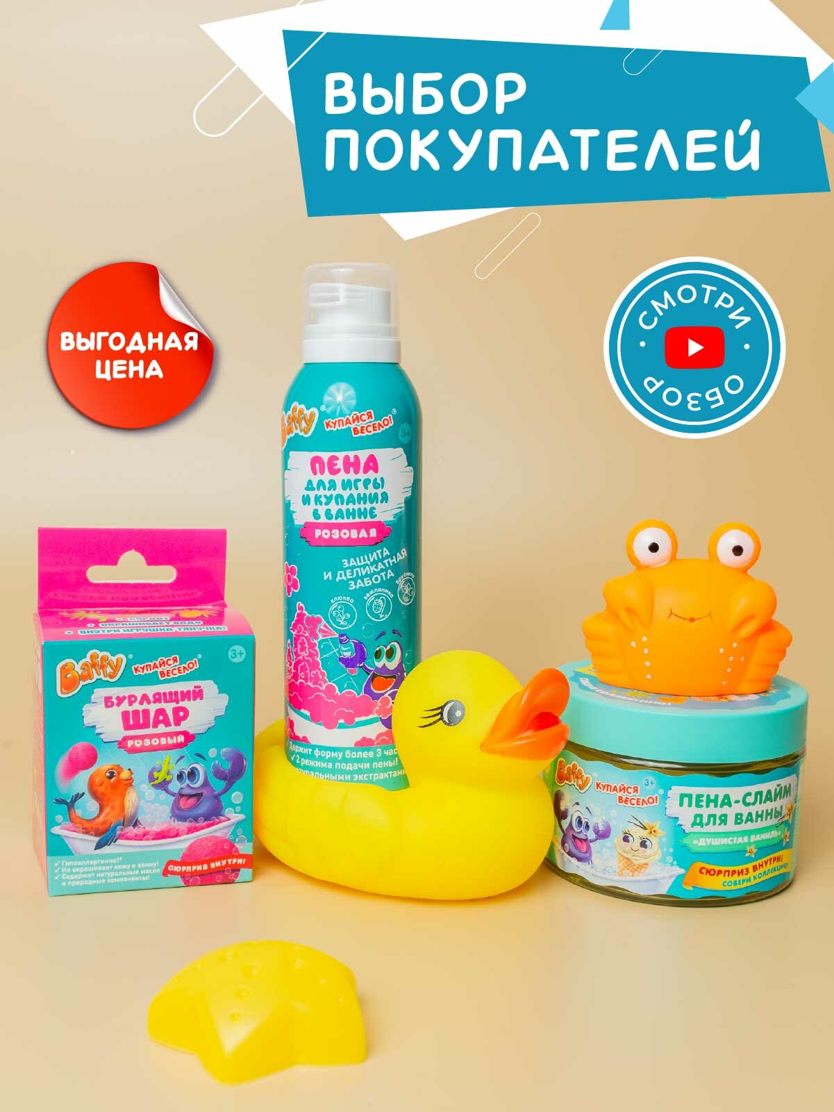 Набор для купания Baffy "Хиты", для мальчиков, гипоаллергенный, бурлящий шар, слайм, пена, гипоалергенный