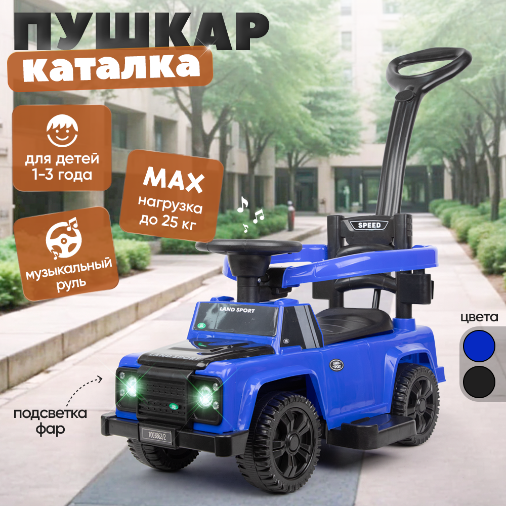 Купить Каталка толокар с ручкой, свет, звук, синяя