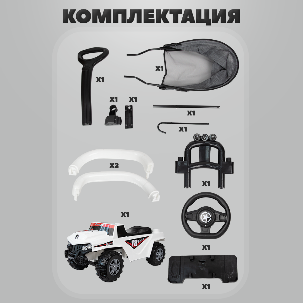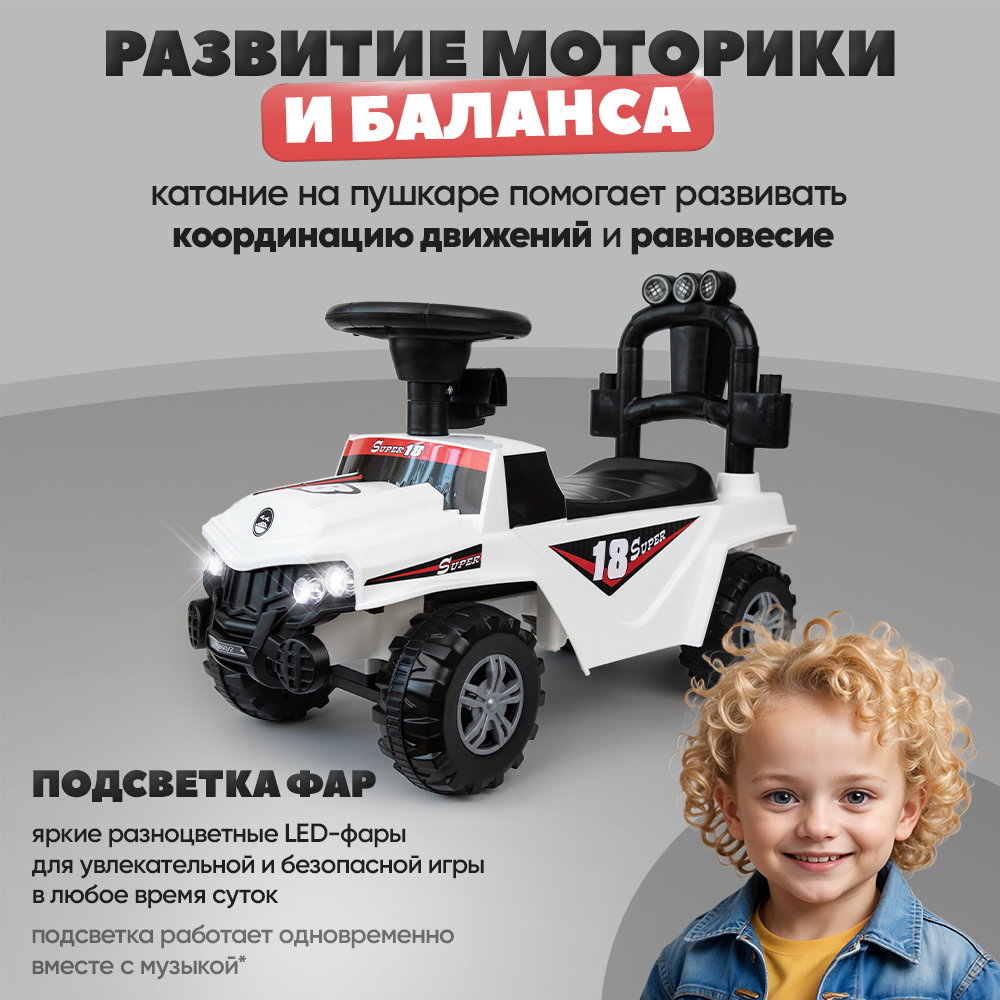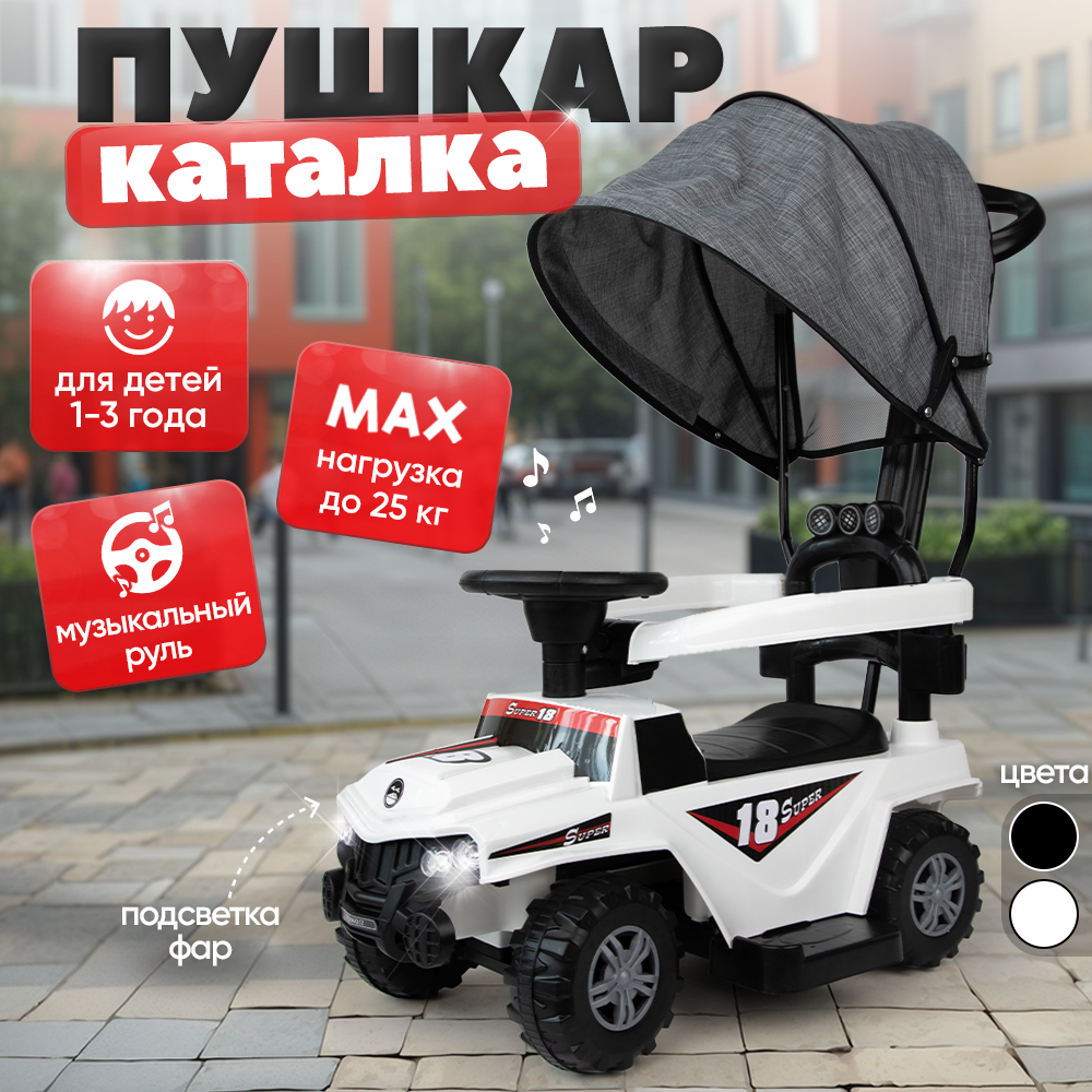 Купить Каталка детская с ручкой и капюшоном, свет, звук