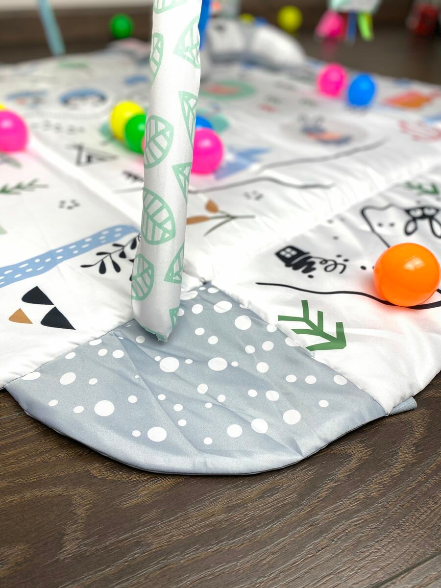 | Комплектация | коврик 1 шт. дуги 2 шт. шарики цветные 20шт. подушка 1 шт. игрушки 5 шт |