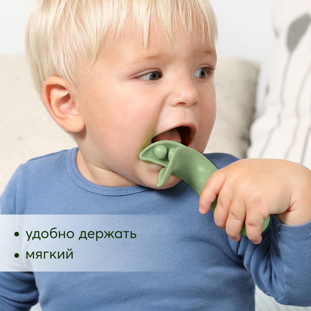 20035, Прорезыватель Happy Baby силиконовый, оливковый интересное: