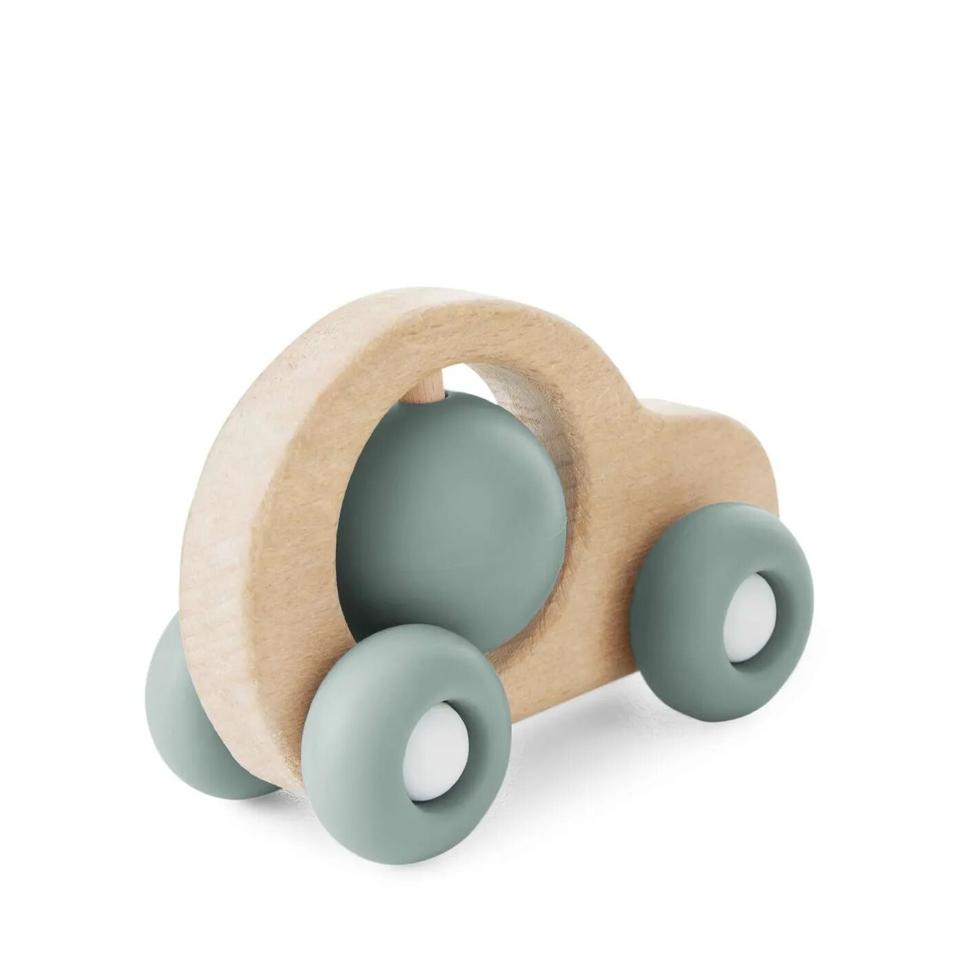 20038, Прорезыватель для зубов детский Happy Baby грызунок деревянный, силиконовый, машинка, зеленый, оливковый