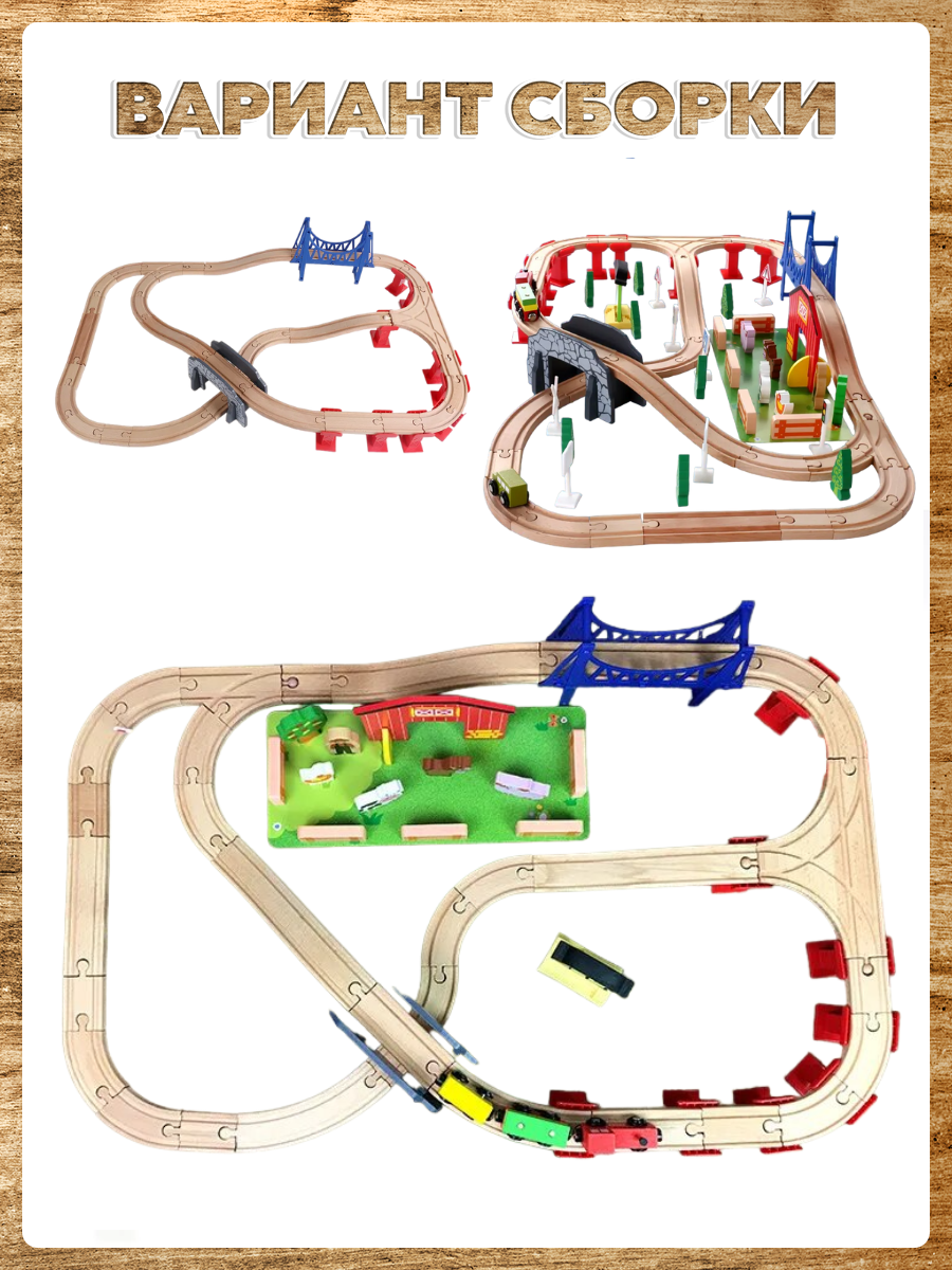 Деревянная железная дорога с фигурками животных и мостом 82 детали интересное:
