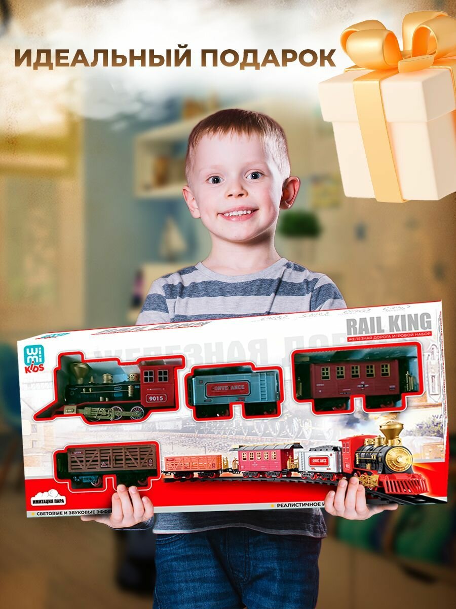 Железная дорога детская WiMi со светом и звуком, поезд игрушки с паром интересное: