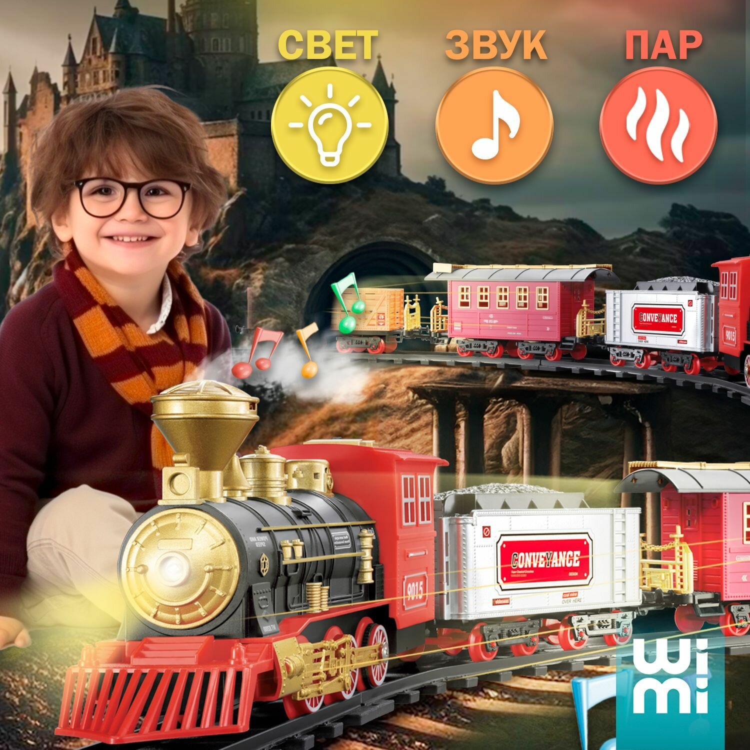 Купить Железная дорога детская WiMi со светом и звуком, поезд игрушки с паром