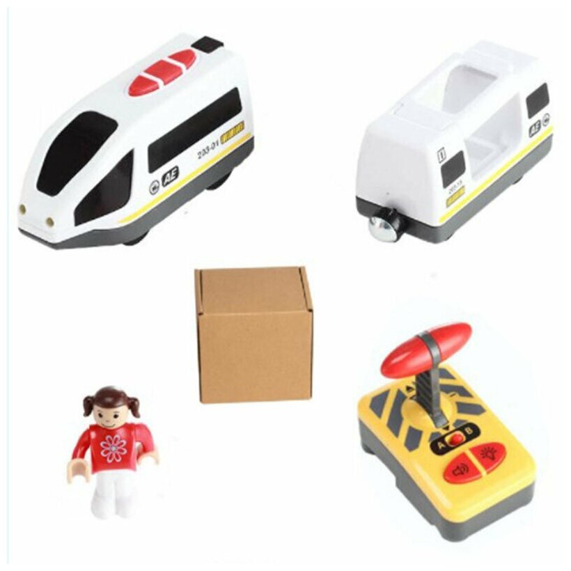 Купить Электропоезд для деревянной железной дороги с пультом управления, поезд на батарейках с вагонами