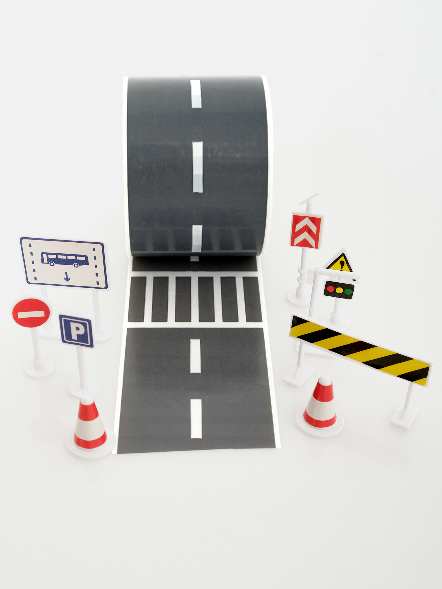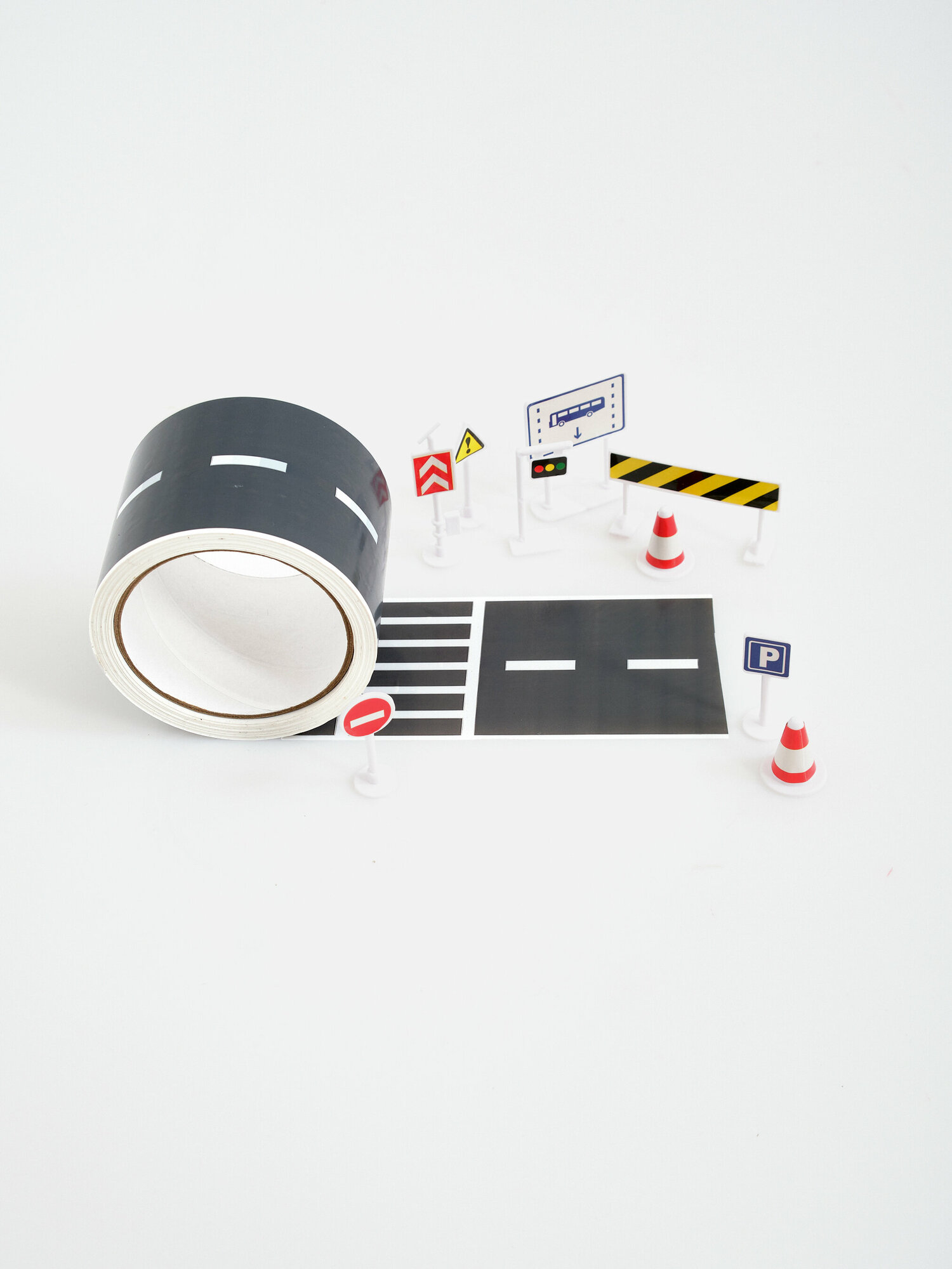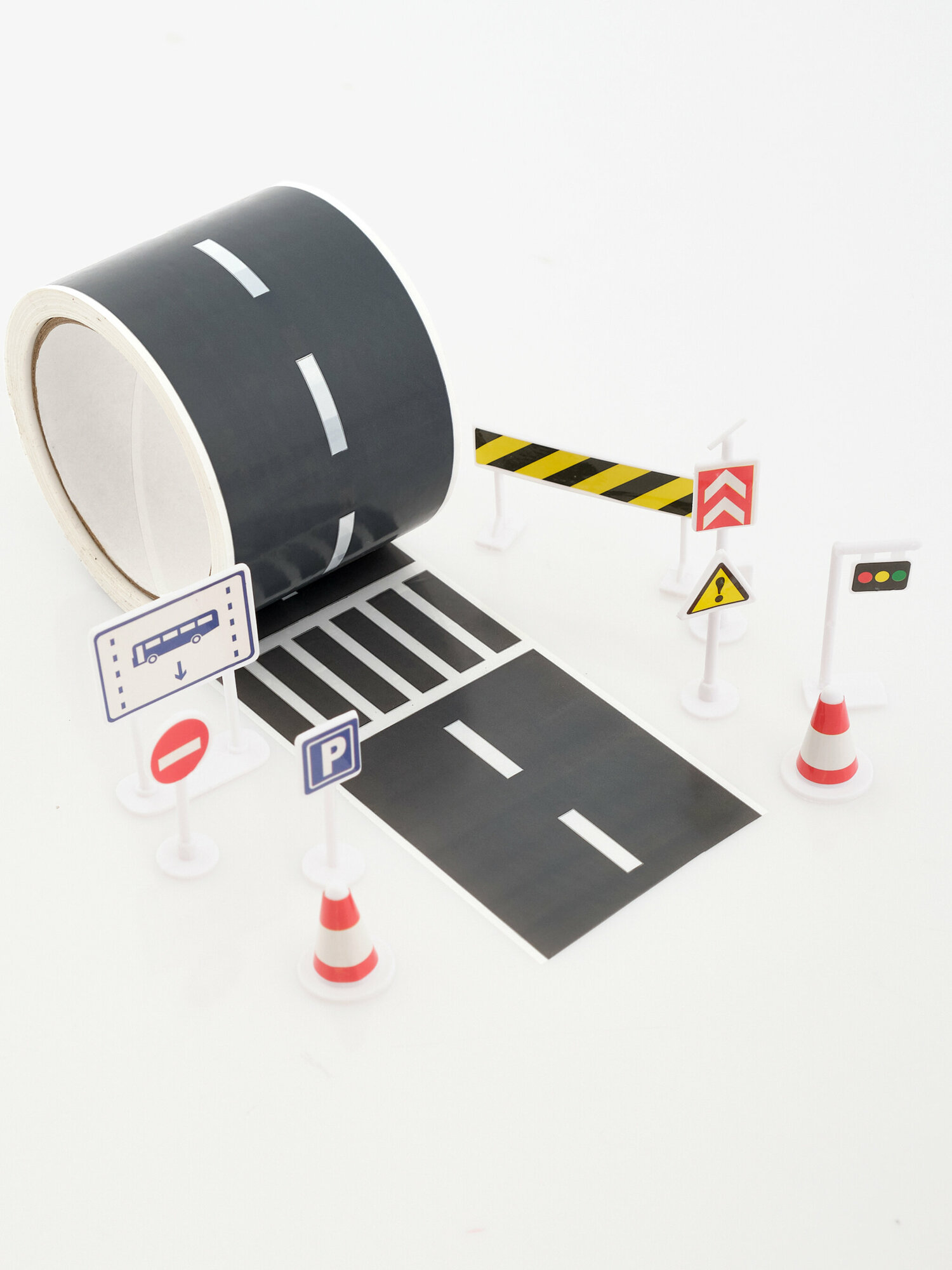 Набор игровой скотч дорога для машинок 72мм х 50м с дорожными знаками