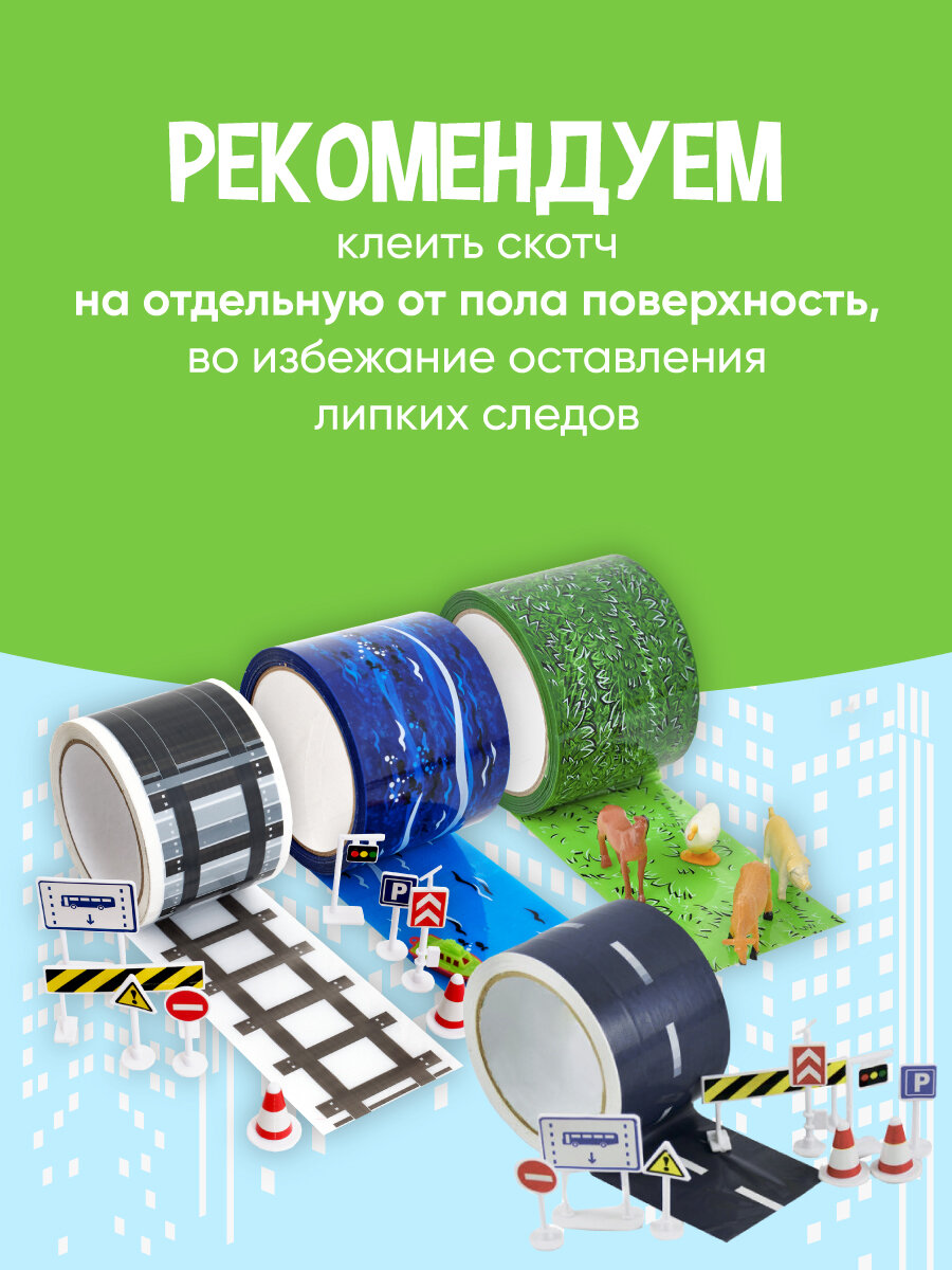 Детский набор игровой скотч железная дорога 72мм х 50 м / Дорожные знаки