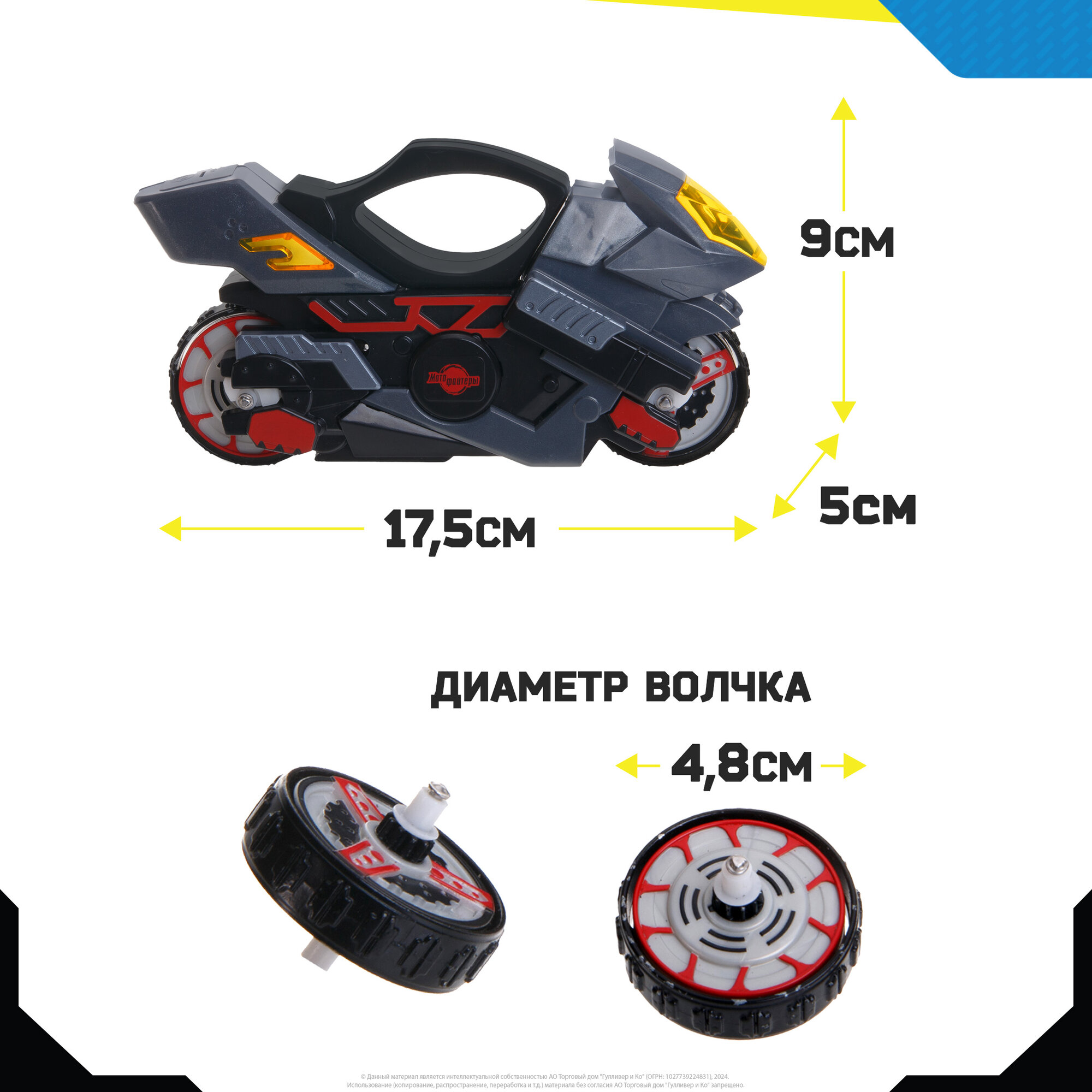 | Комплектация | пусковая установка в виде мотоцикла, 2 волчка |