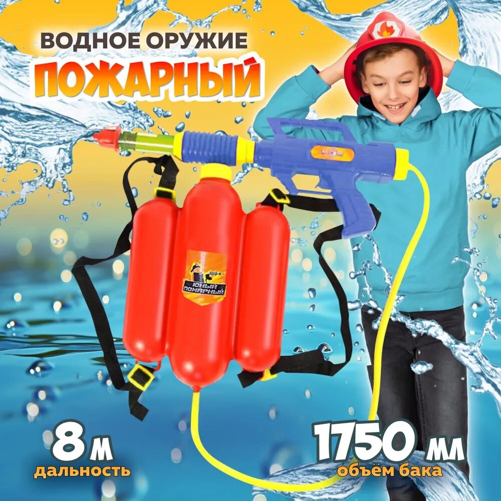 Водный пистолет с рюкзаком Dream Makers Водяной бластер Пожарный 2235C красный интересное: