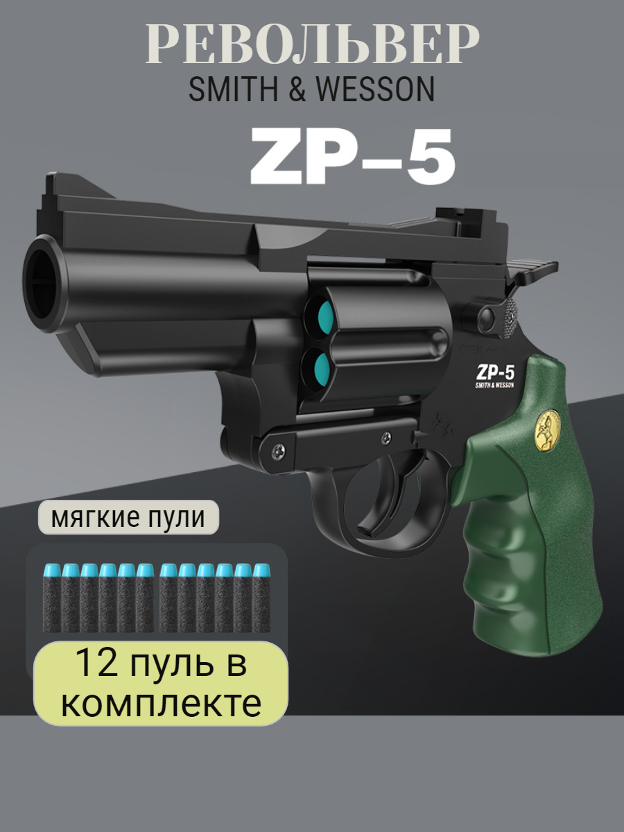 Пистолет с пульками револьвер черно-зеленый интересное: