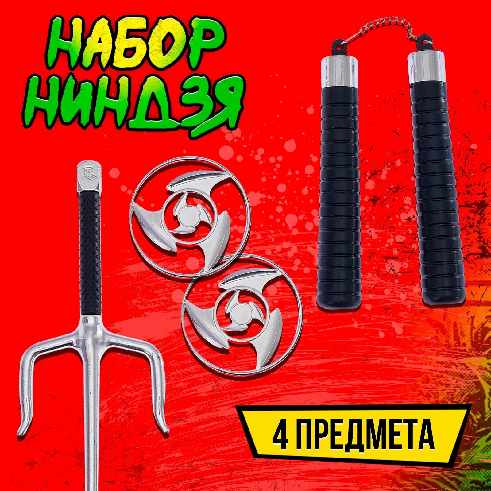 Купить Набор ниндзя "Ямакаси", 4 предмета: кинжал, нунчаки, 2 диска
