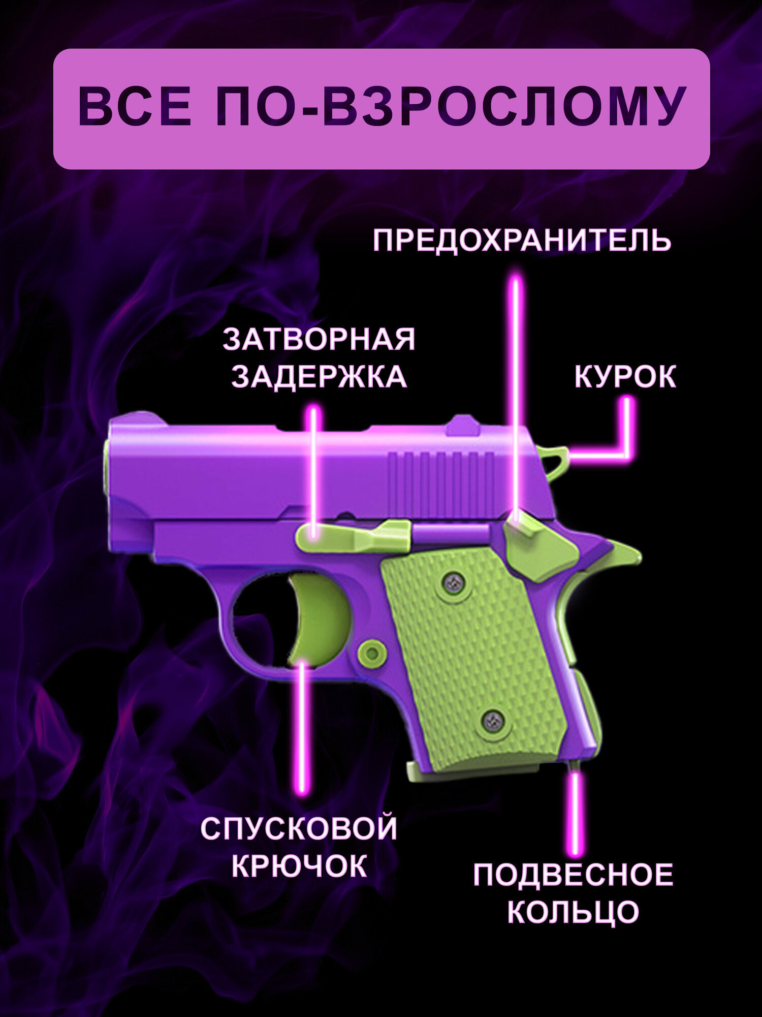 Игрушечный пистолет антистресс M1911 мини-модель 3D розовый