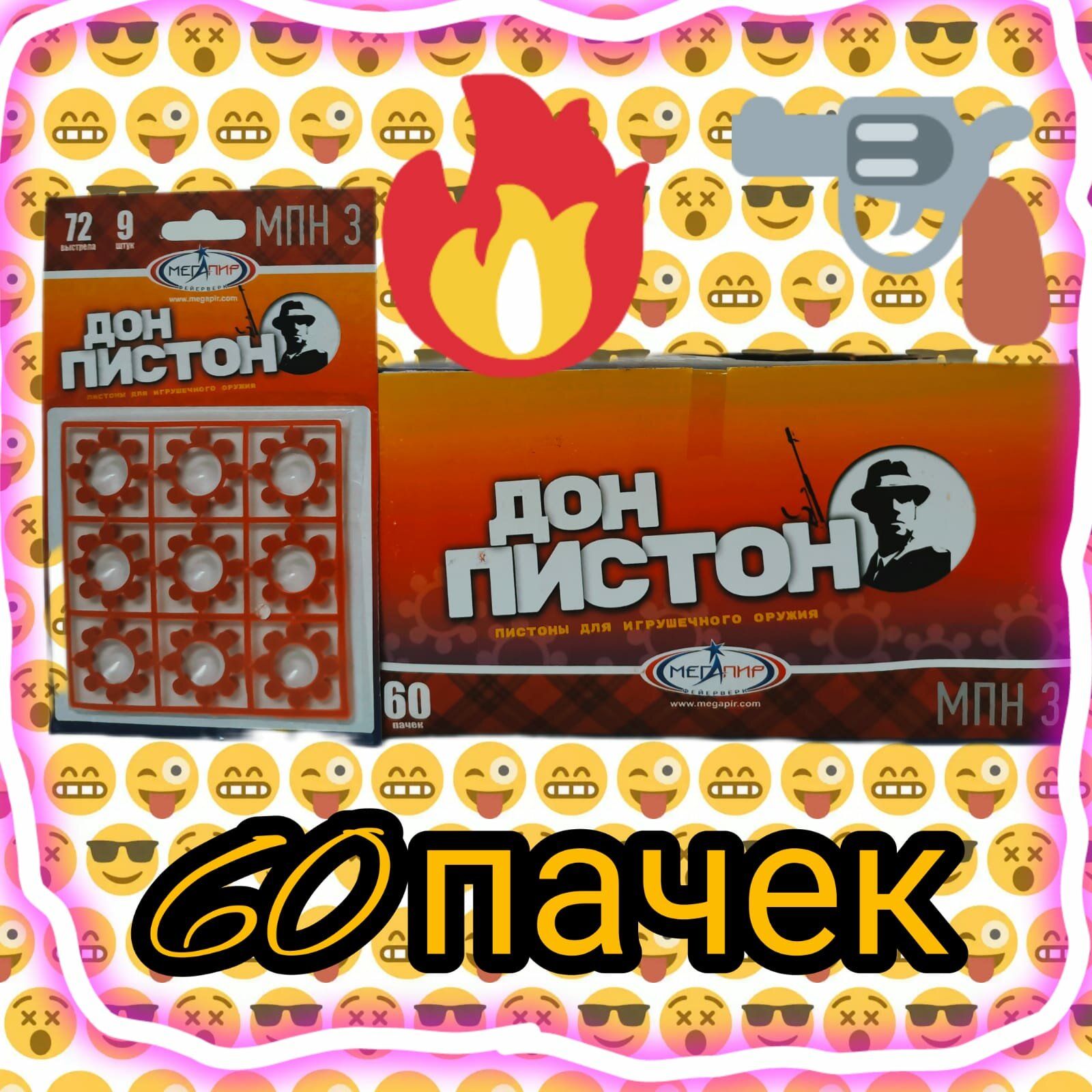Пистоны Мегапир, 8-зарядные, 6 блистеров по 72 выстрела, красные, 19см