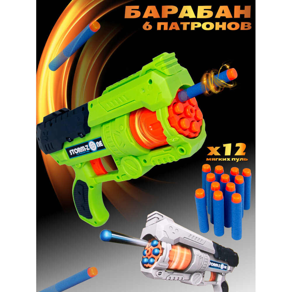 Игрушечное оружие для мальчика детский бластер-пистолет с мягкими пулями и 2 барабанами с поролоновыми пулями 12 шт, 40,8*6,6*28,59 (31 см), Z1122A/OBL1237833