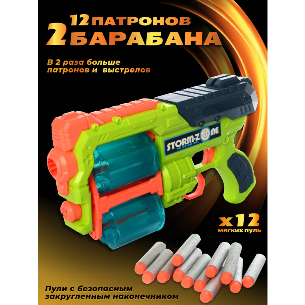 Купить Игрушечное оружие для мальчика детский бластер-пистолет с мягкими пулями и 2 барабанами с поролоновыми пулями 12 шт, 40,8*6,6*28,59 (31 см), Z1122A/OBL1237833