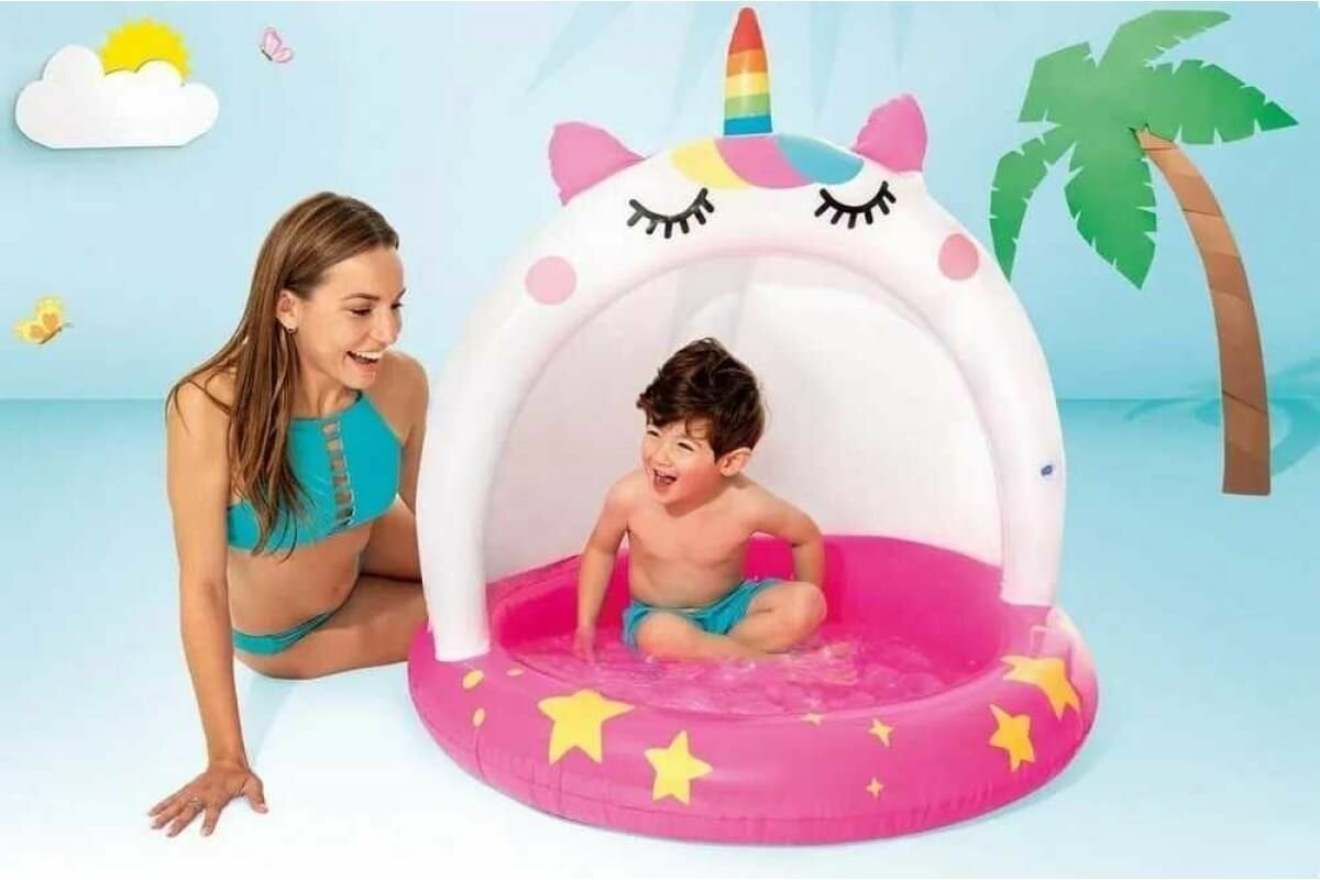 Детский надувной бассейн Intex "Котенок-единорожка" 102x102 см, с навесом, 45 л, от 1 до 3 лет интересное: