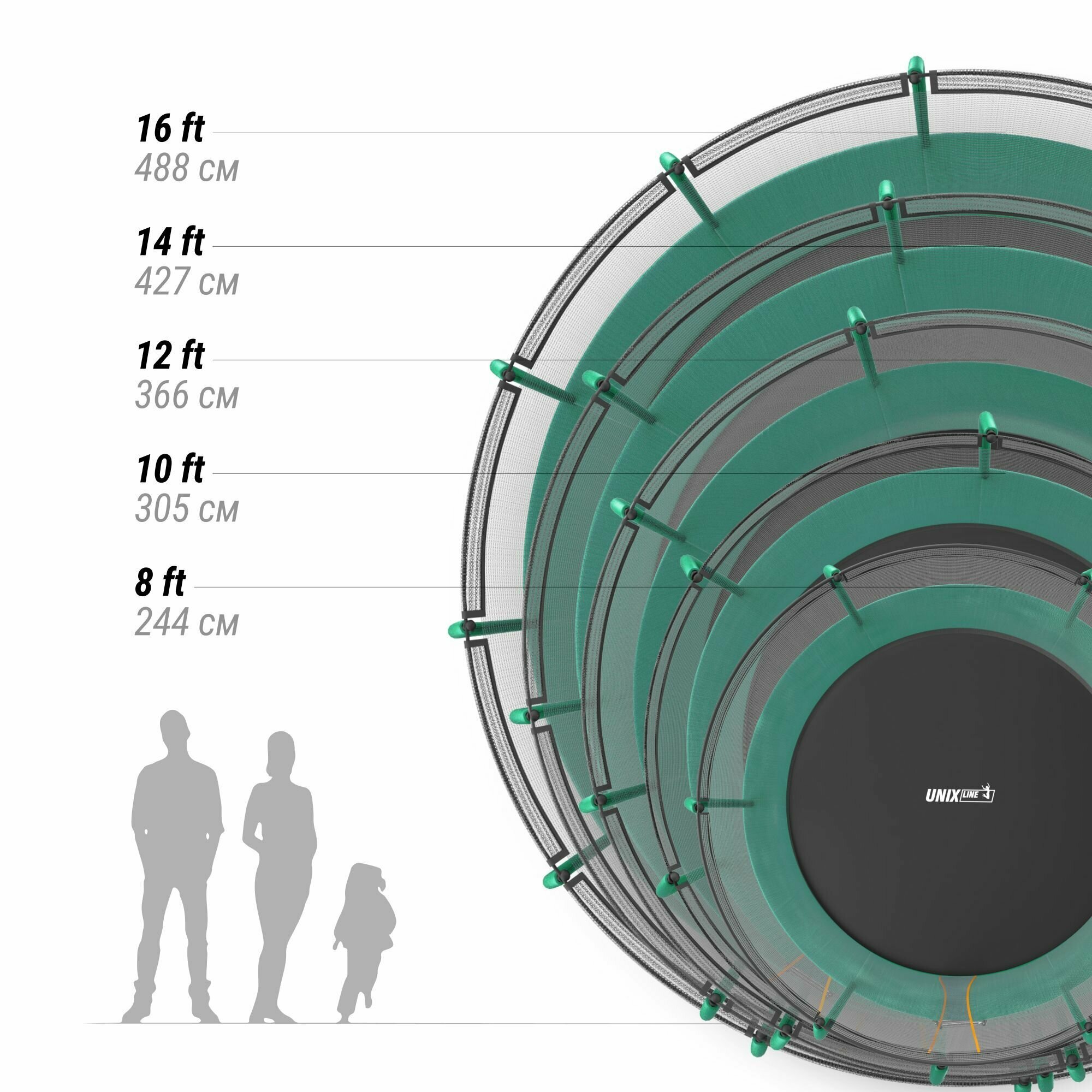 Батут "UNIX Line Supreme Basic 10ft", 150 кг, зеленый, 45кг