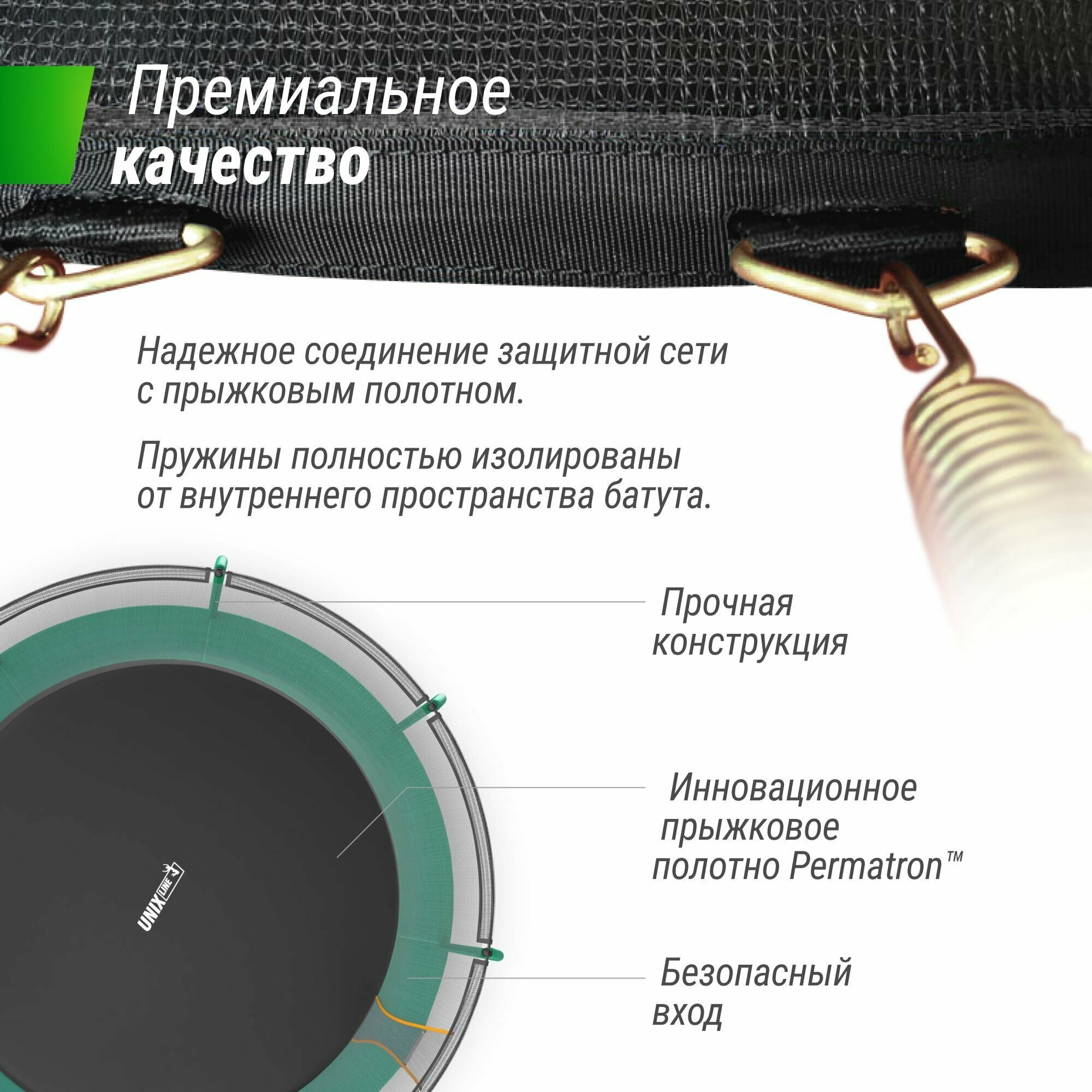 СохранитьБатут "UNIX Line Supreme Basic 14ft", цвет зеленый, нагрузка до 160кг интересное: