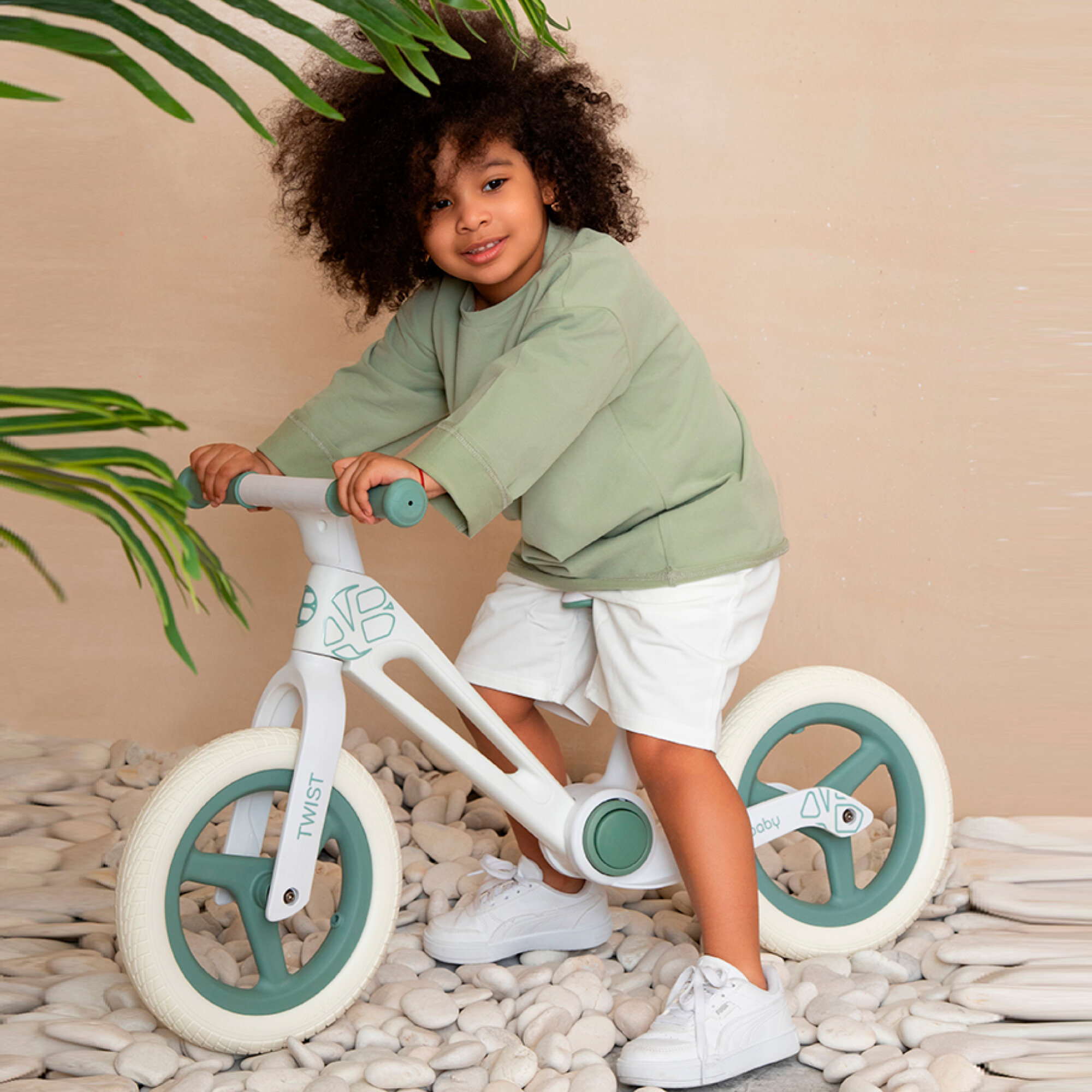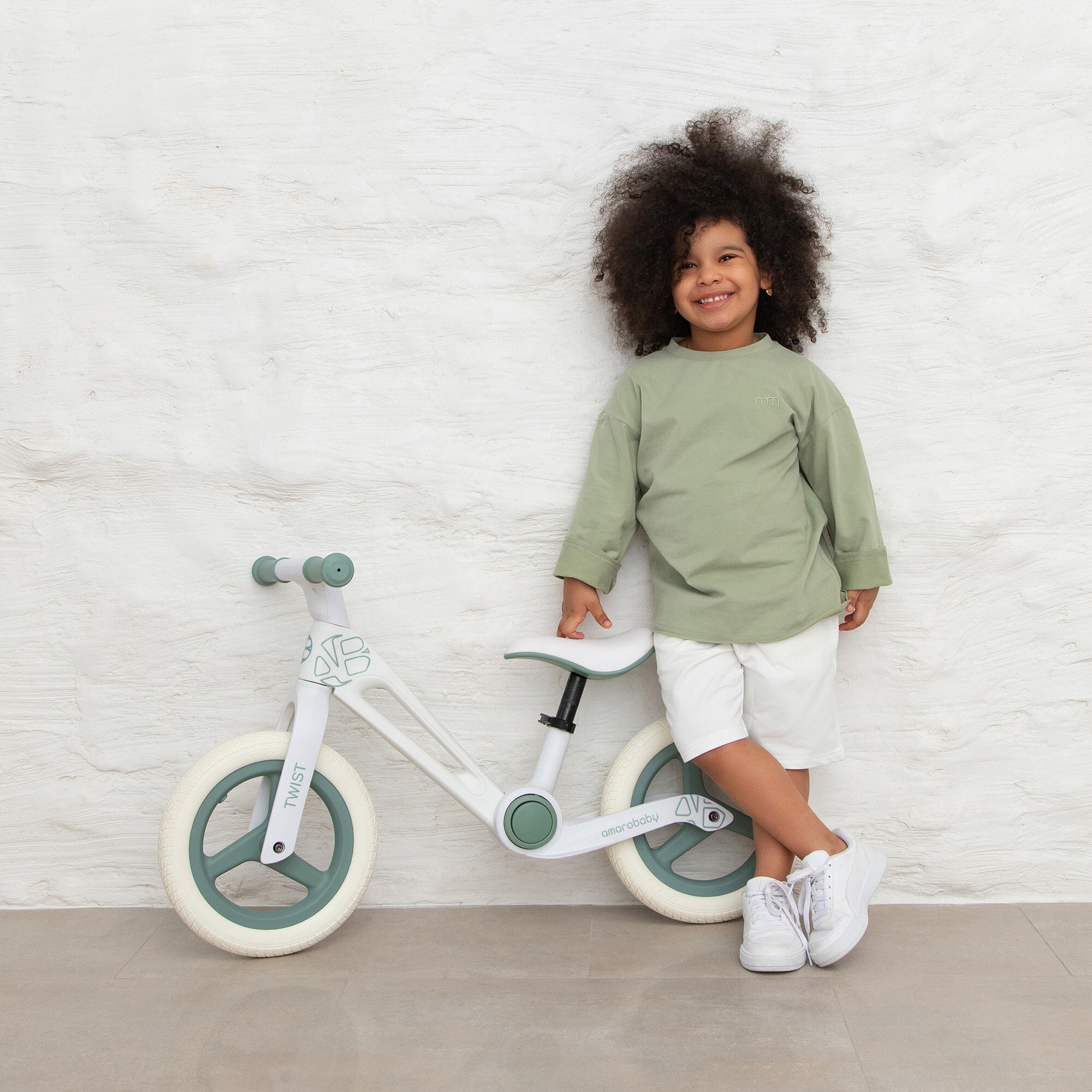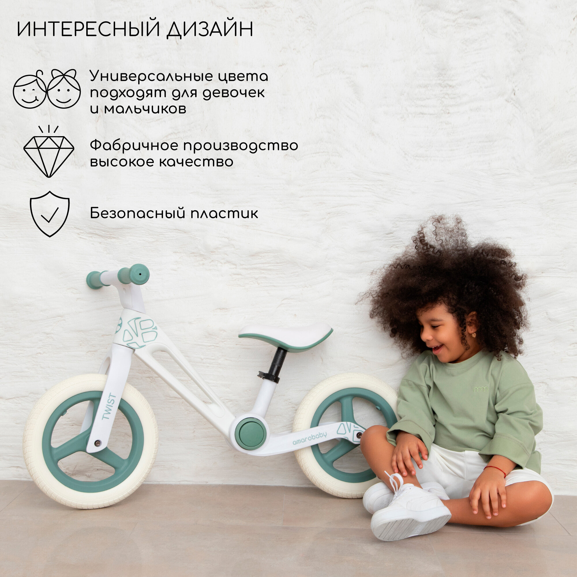 Двухколесный беговел Amarobaby Twist, белый/зеленый интересное: