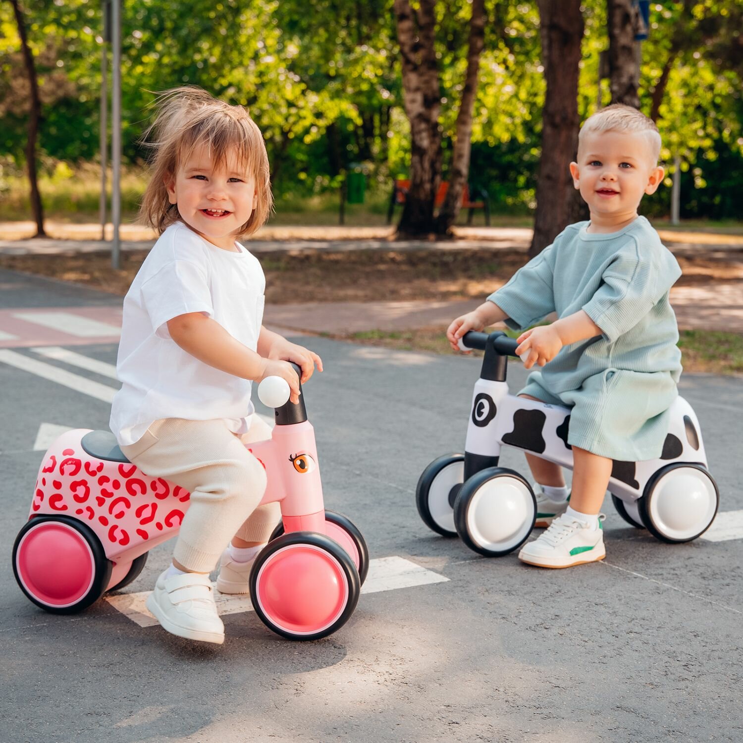 Беговел детский от 2 лет, KONIK! , светящиеся колеса, белый, с регулируемым сиденьем,