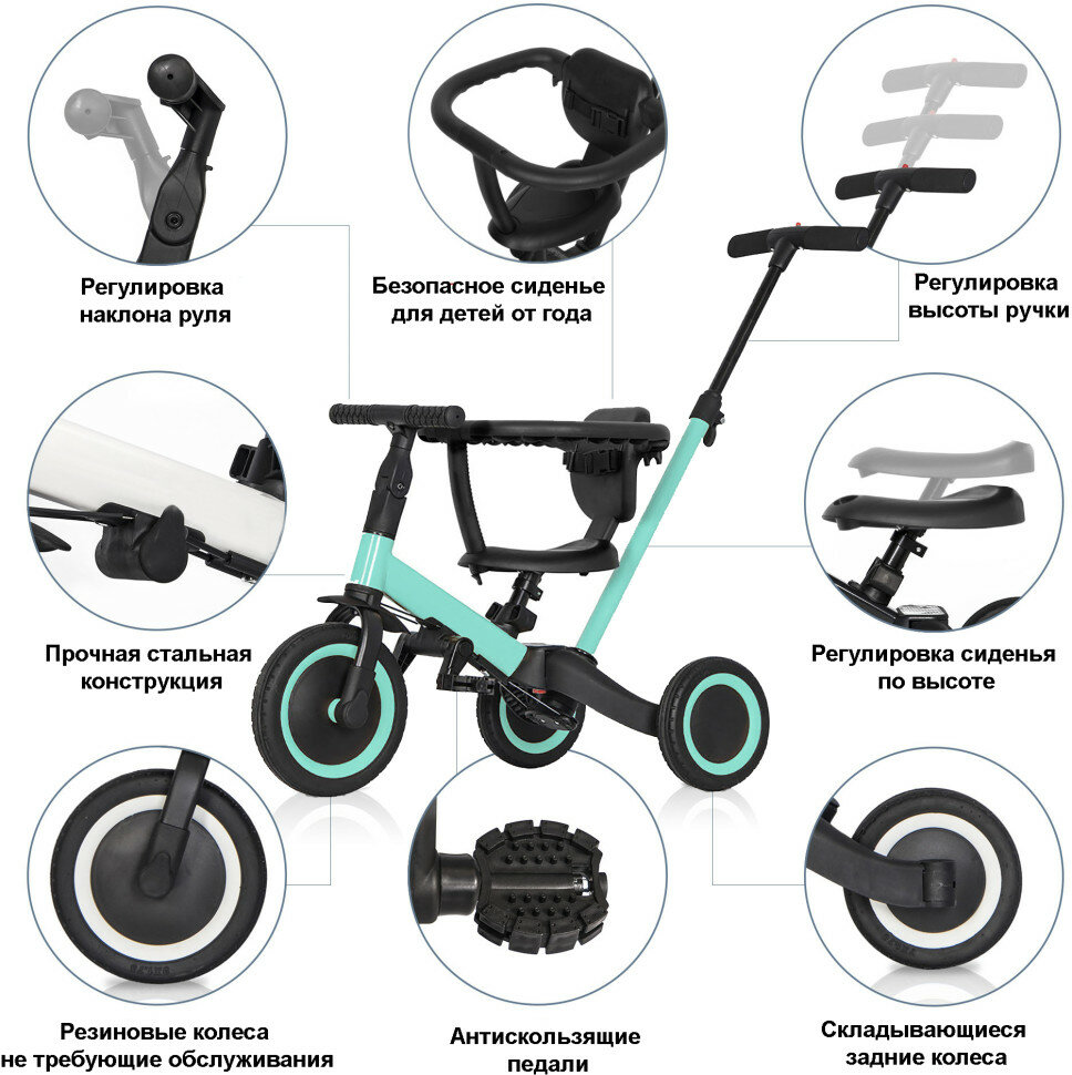 Детский беговел-велосипед 6в1 с родительской ручкой, зеленый - TR008-CYAN интересное: