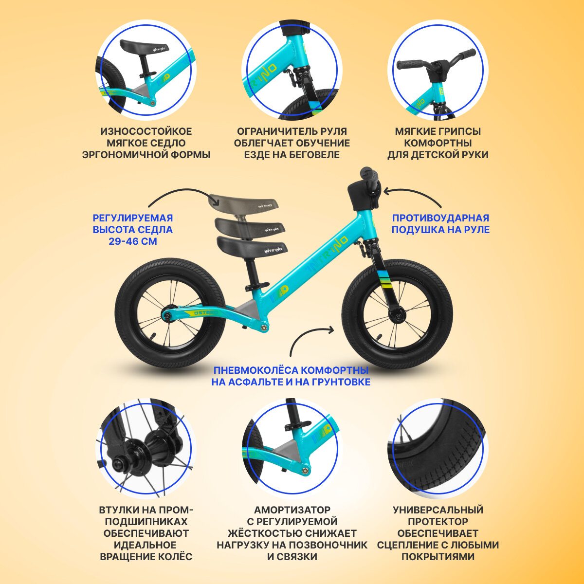 Беговел Intrino Astero детский 1.5+ с амортизатором, высокий руль, рама алюминий морская волна