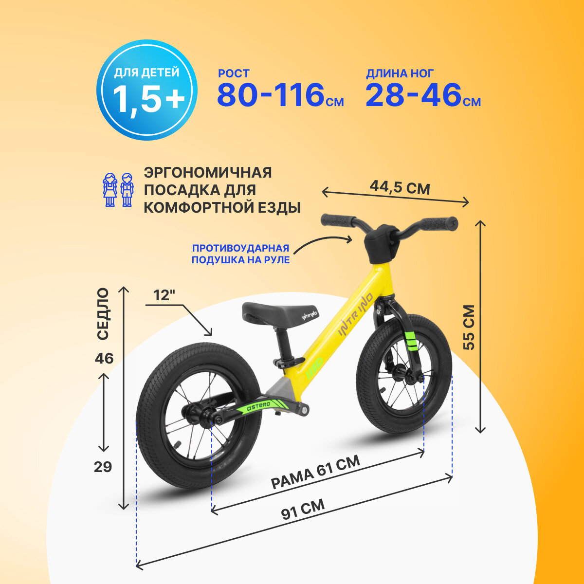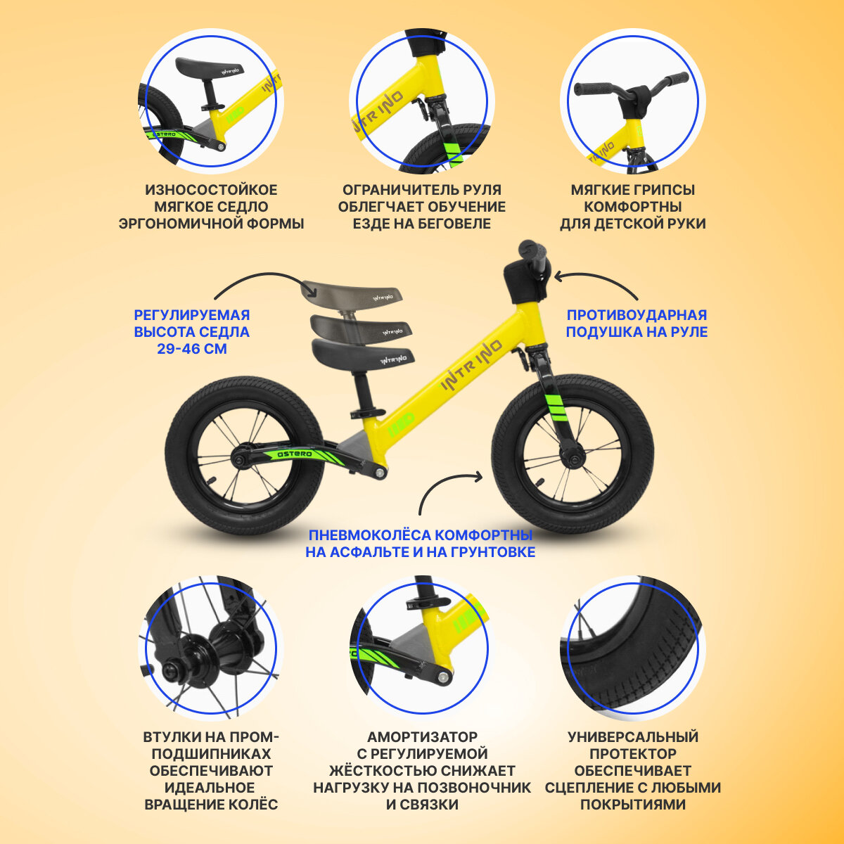 Беговел Intrino Astero детский 1.5+ с амортизатором, высокий руль, рама алюминий жёлтый