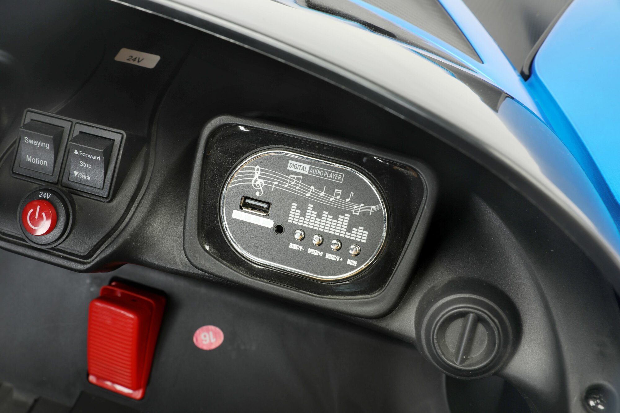 | Особенности | двухместный / задний ход / индикатор заряда / на аккумуляторе / открываются дверцы / плавный ход / радиоуправление / требуется частичная сборка |