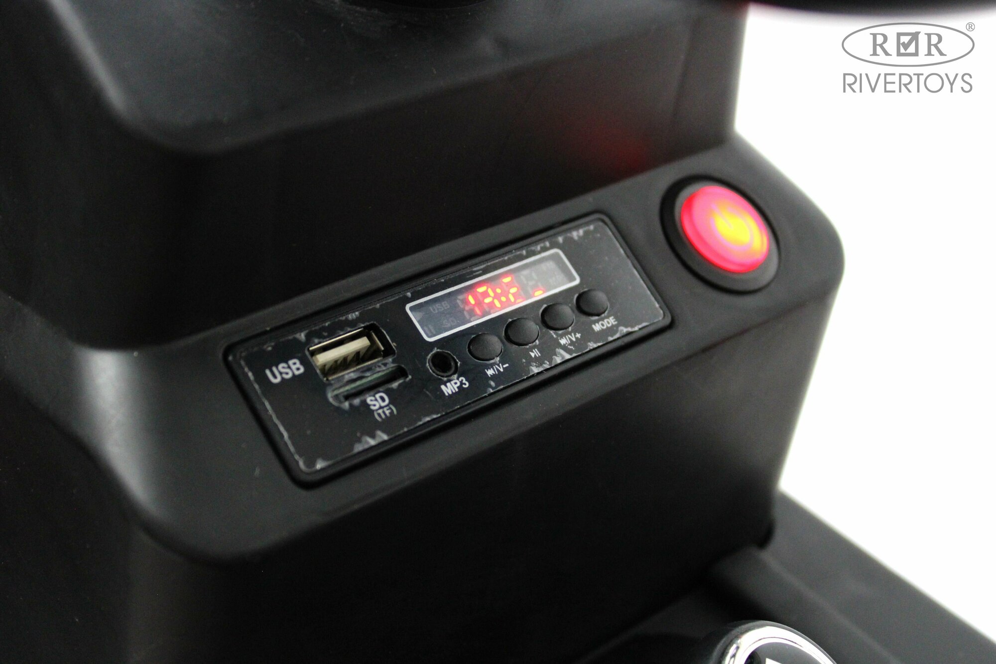 | Дополнительная информация | "Подсветка передних фар; Музыкальный руль (звук клаксона ); Поворотный руль; Система мультимедиа, оснащенная USB-входом и SD-входом; Ремень безопасности; Индикатор заряда батареи." |
