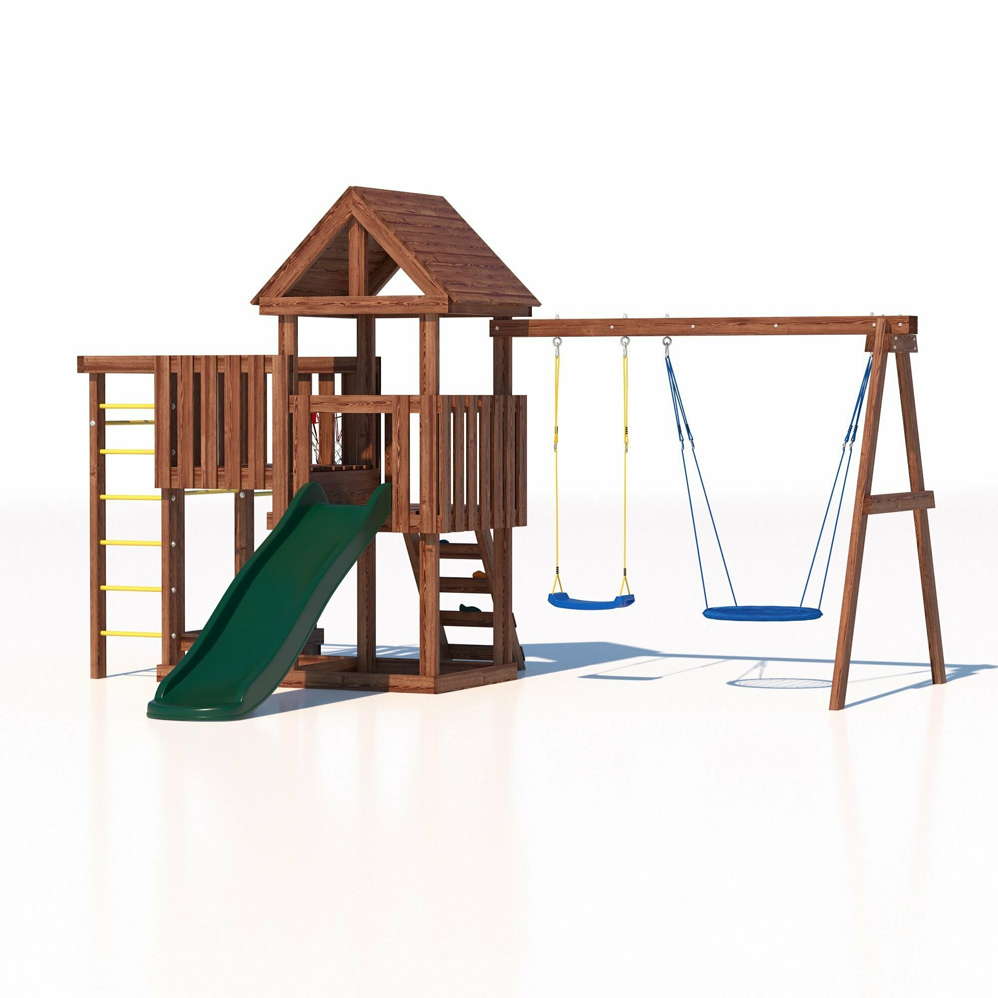Купить Детская деревянная игровая площадка для улицы дачи CustWood Junior Color JC9 с деревянной крышей
