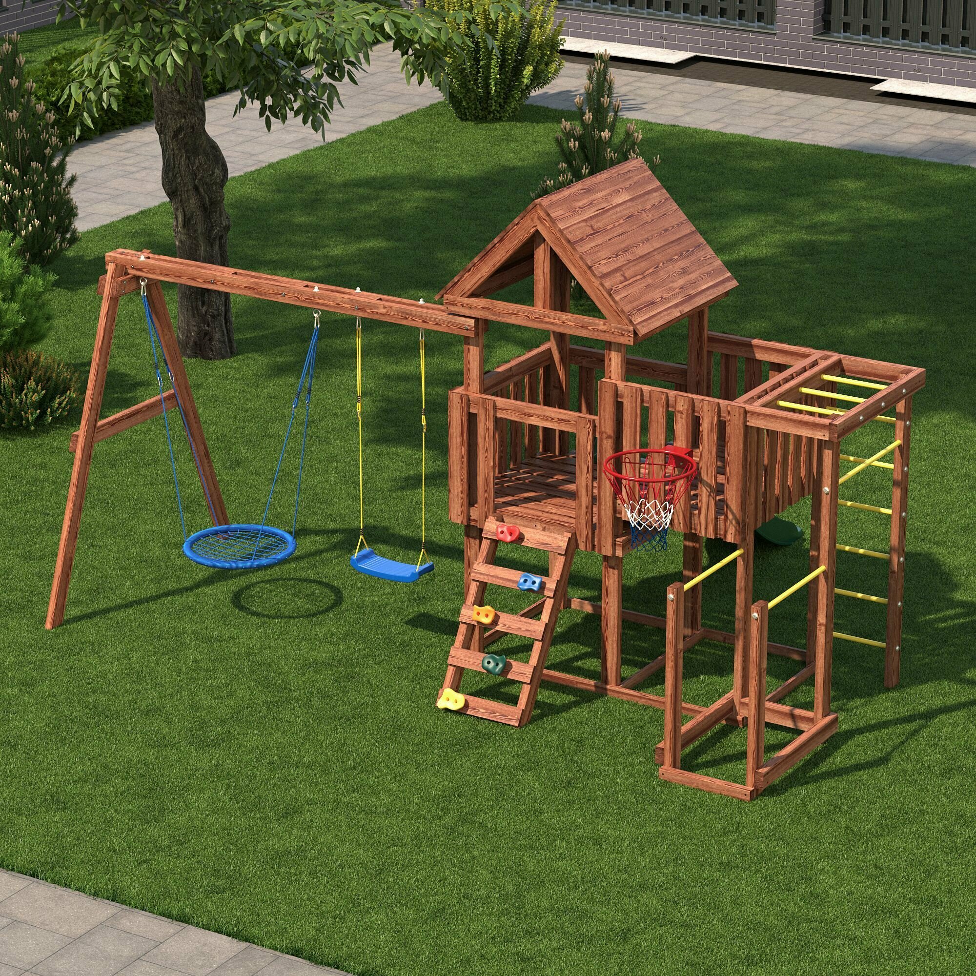 CustWood Junior J9 Детская деревянная игровая площадка, спортивный комплекс домик, качели, горка, шведская стенка, турник, площадка для дачи