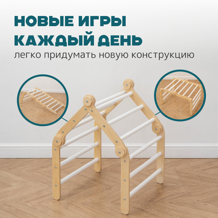 Детская складная система - трансформер треугольник Пиклер лайт шлифованный с горкой "Лесенка" PAPPADO
