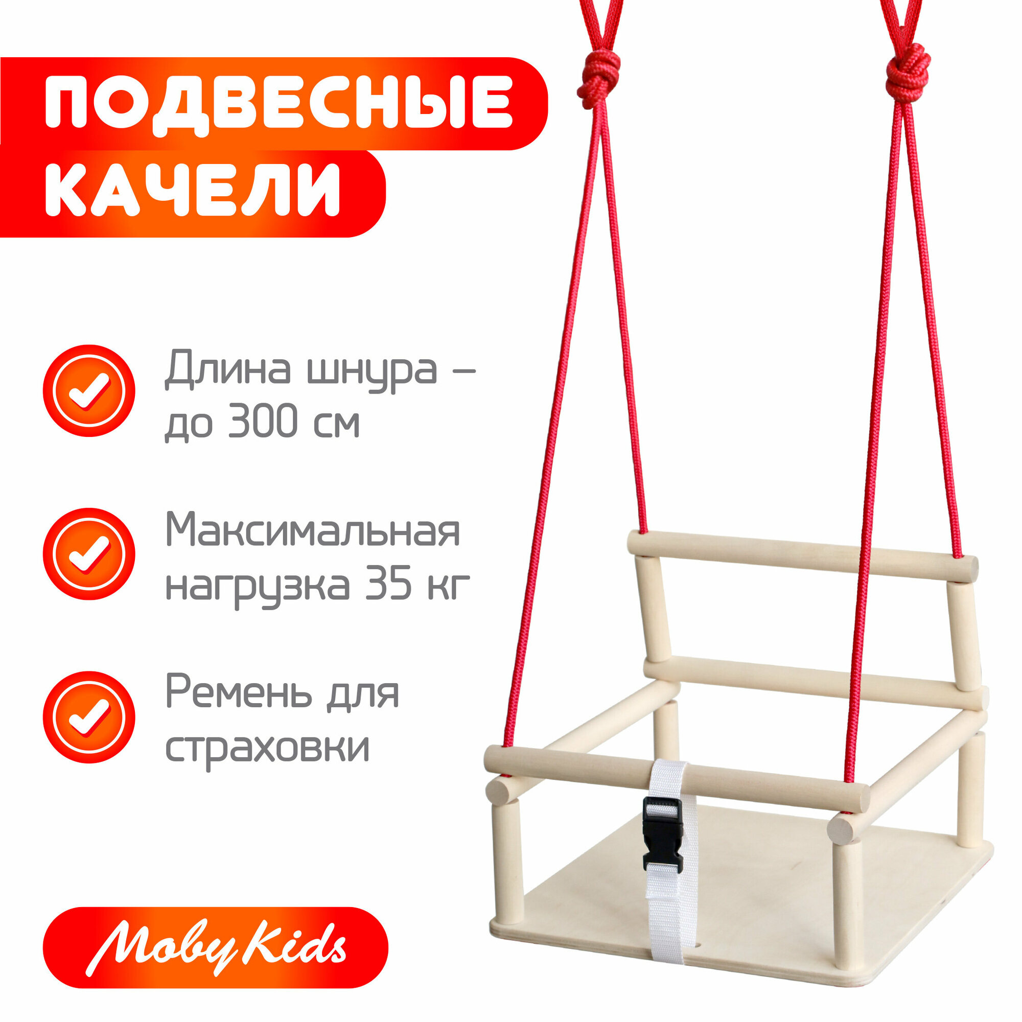 Качели "Полет" для детей от 3 до 7 лет, деревянные, Moby Kids