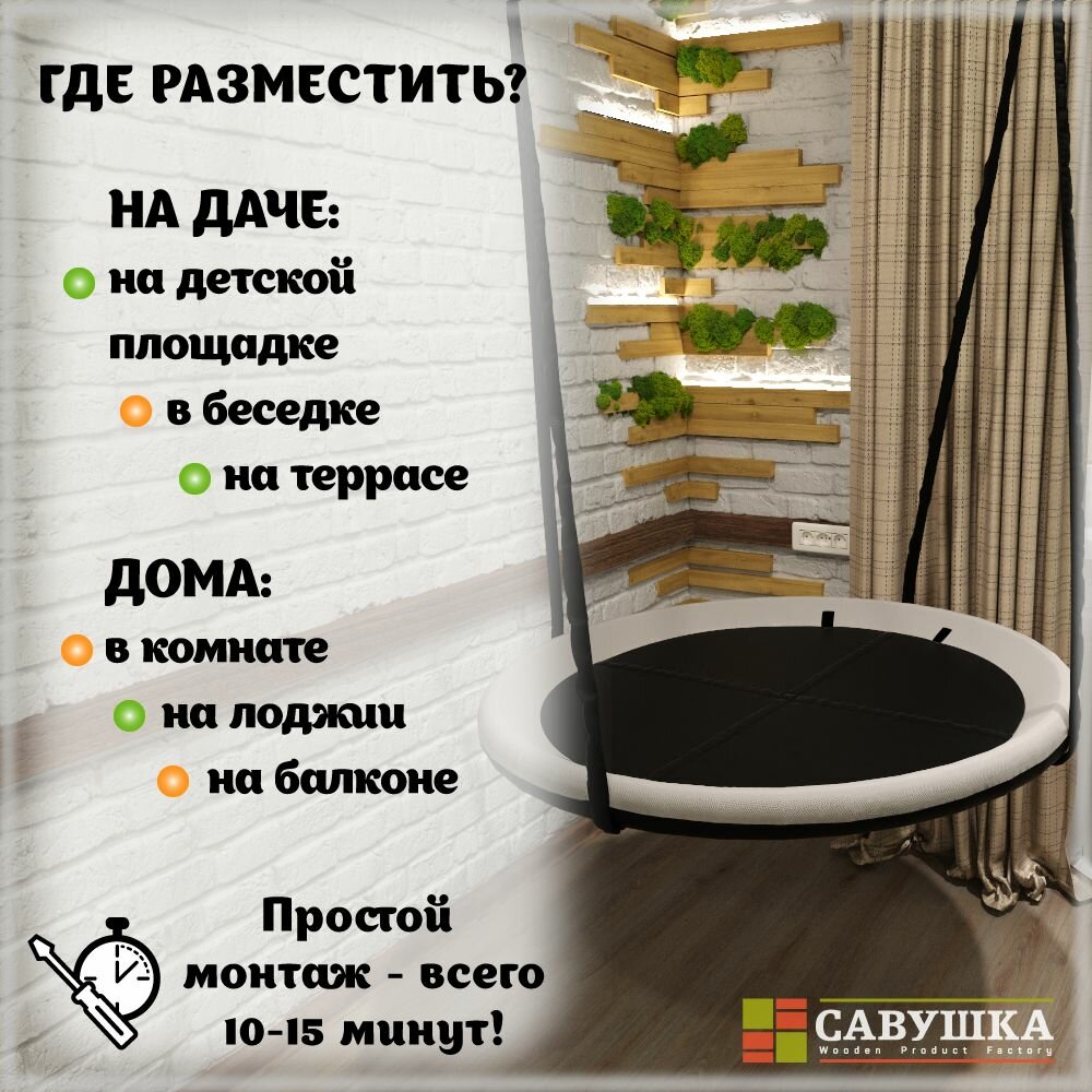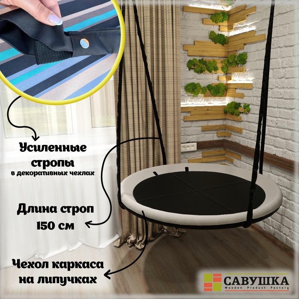 Качели Гнездо 100 см Савушка подвесные уличные черный/молочный