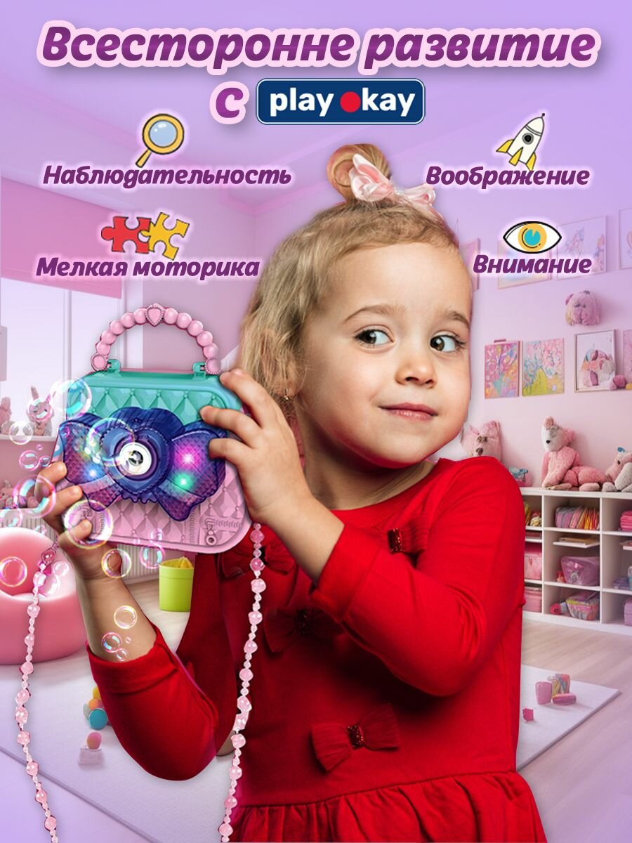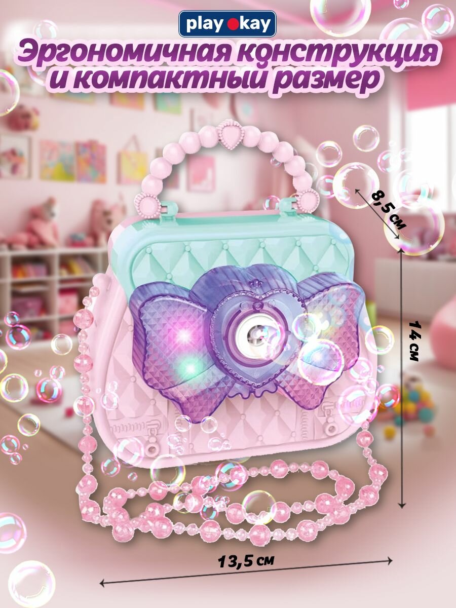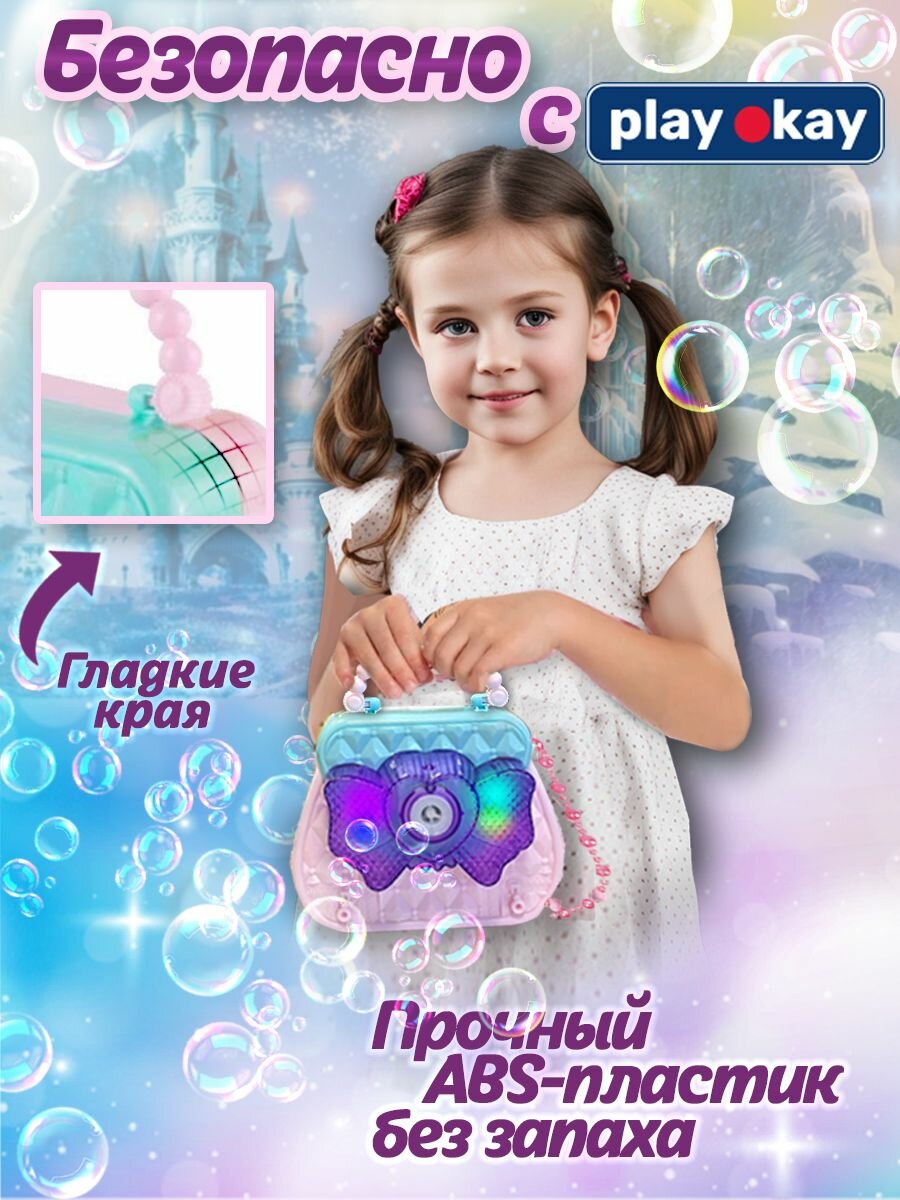 Генератор мыльных пузырей Play Okay детский, пистолет камера, светящийся, бирюзовый и розовый интересное: