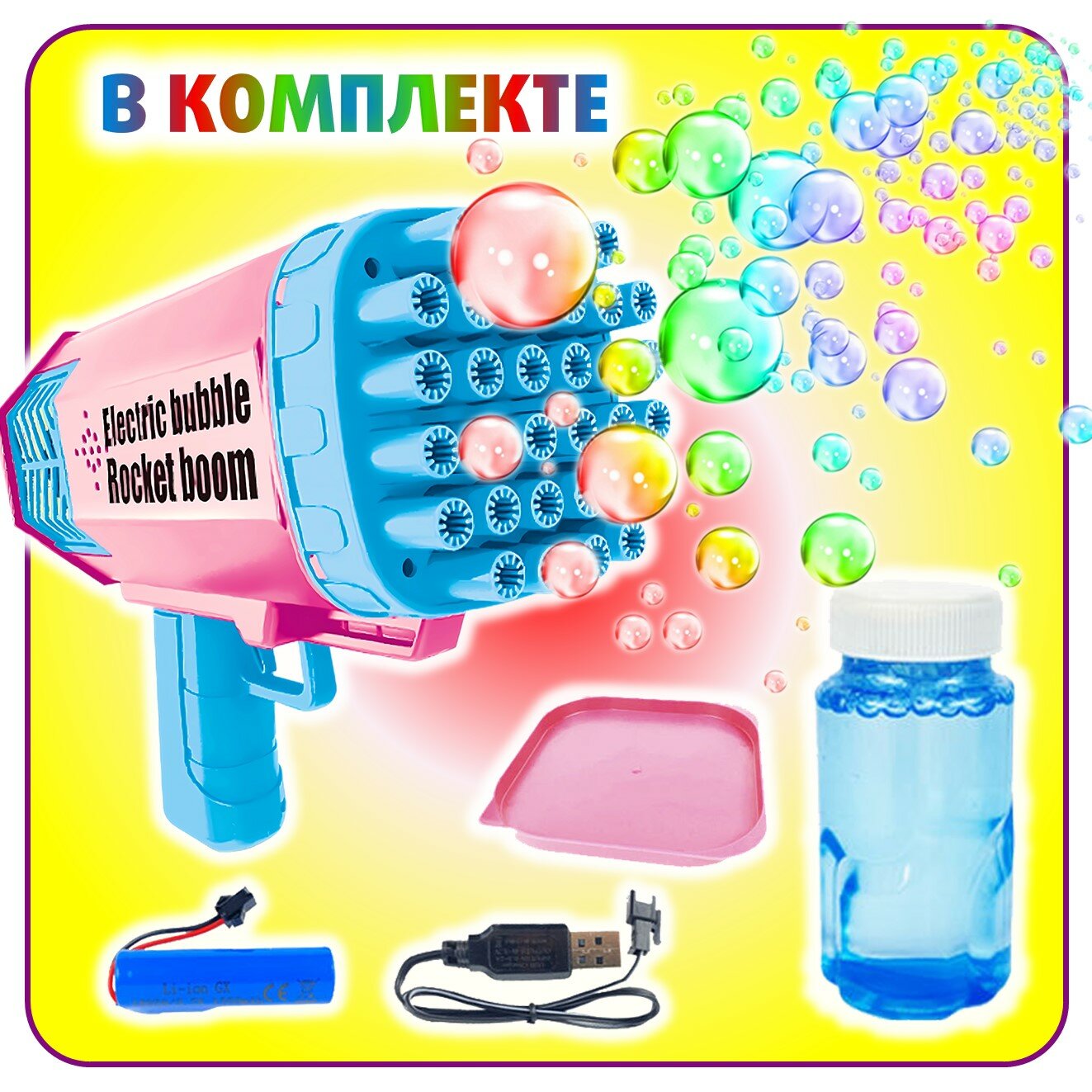 Пистолет для мыльных пузырей, с подсветкой и USB зарядкой. Генератор мыльных пузырей. Мыльный пистолет